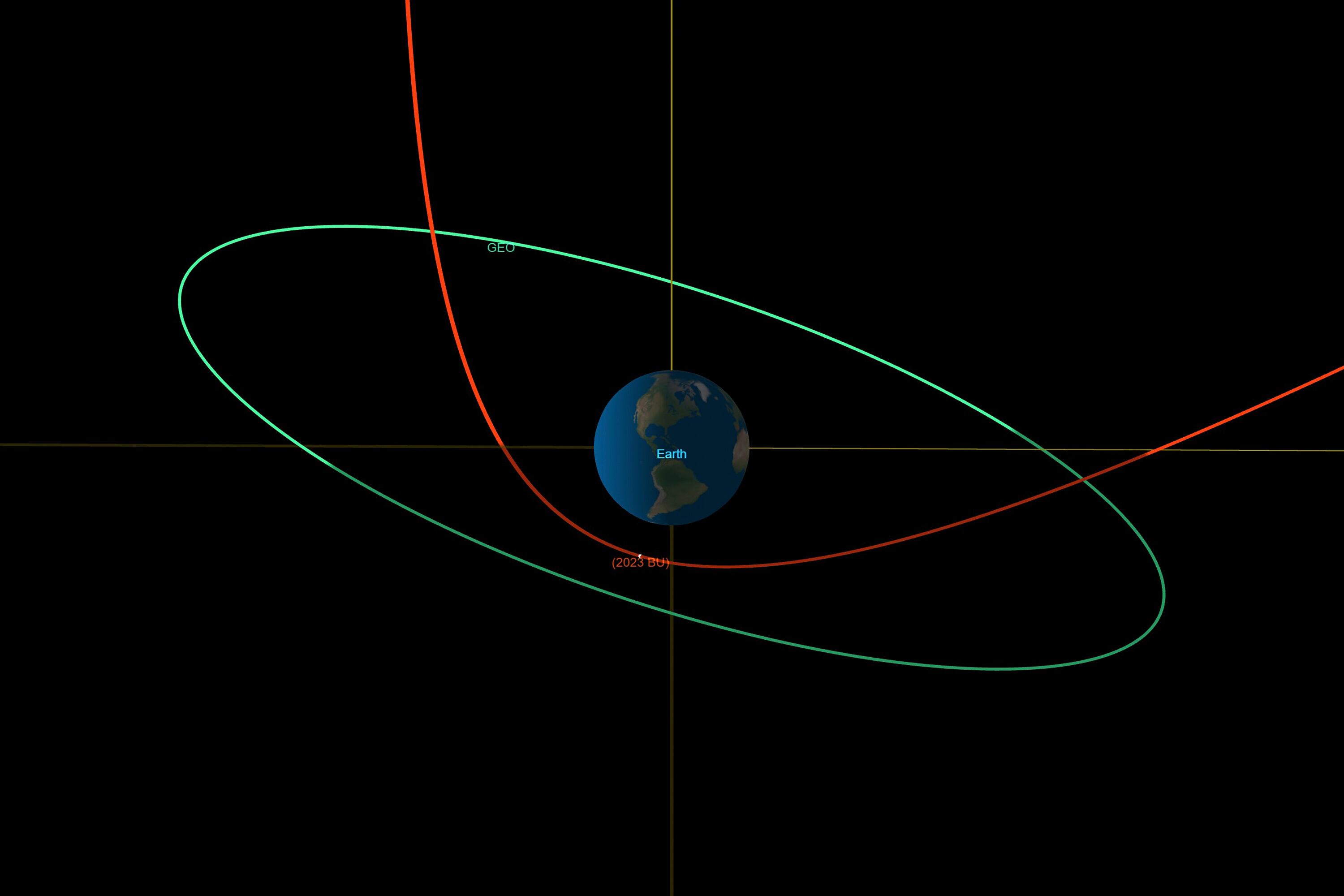 Descubierto el sábado, se cree que el asteroide conocido como 2023 BU tiene entre 3,5 metros (11 pies) y 8,5 metros (28 pies) de ancho. Fue detectado en primera instancia por Gennady Borisov, el mismo astrónomo aficionado en Crimea que descubrió un cometa interestelar en 2019. En cuestión de días, astrónomos de todo el mundo realizaron decenas de observaciones, lo que les permitió refinar la órbita del asteroide.