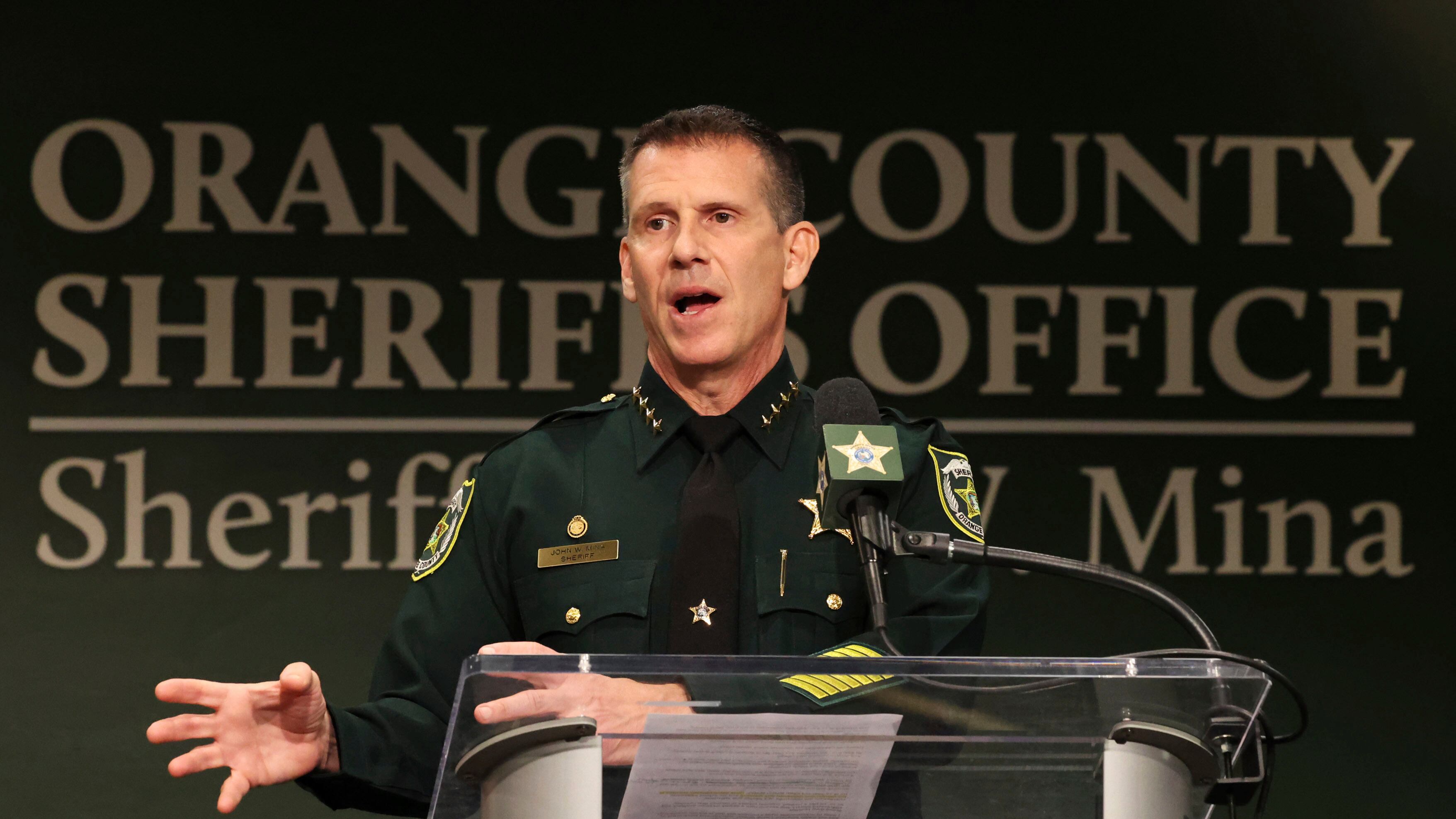 El director policial del condado Orange John Mina en conferencia de prensa en Orlando, Florida, el 22 de febrero de 2023. (Ricardo Ramirez Buxeda/Orlando Sentinel via AP) AP (Ricardo Ramirez Buxeda/AP)