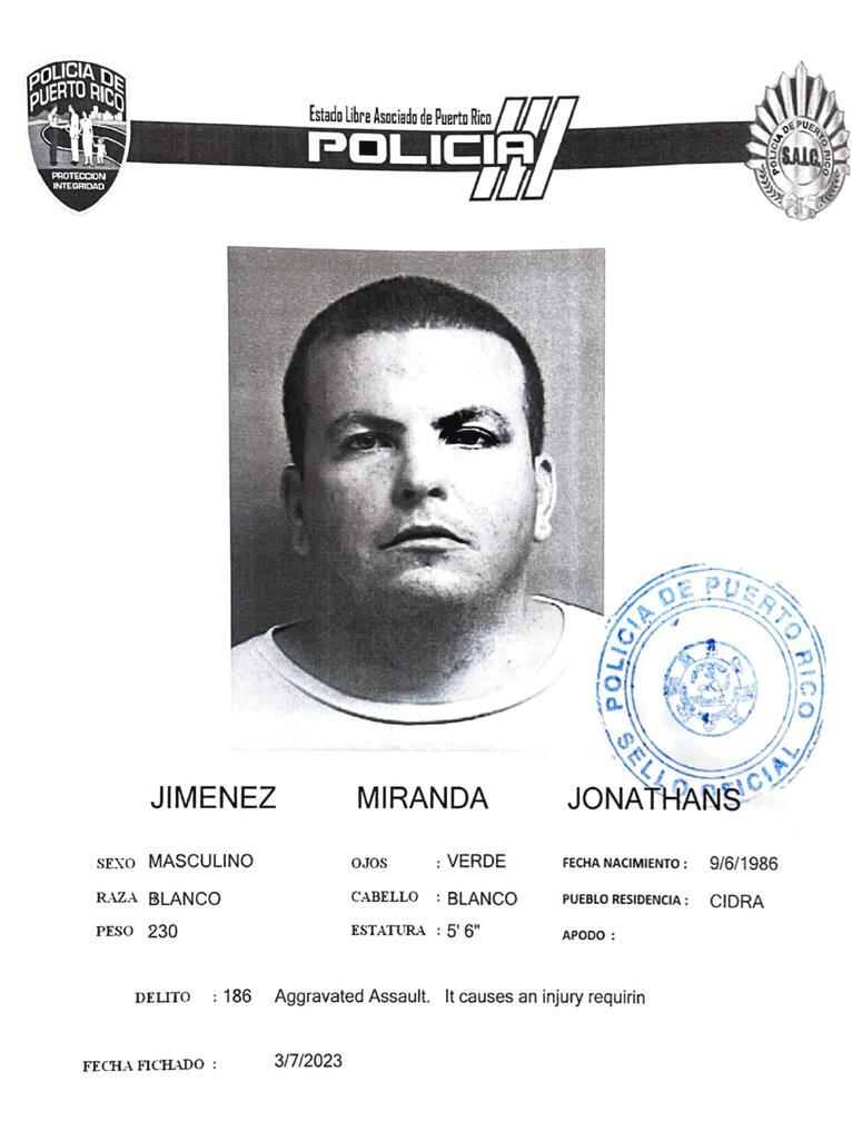 Las autoridades presentaron cargos criminales por agresión grave contra un hombre, identificado como Jonathan Samuel Jiménez Miranda, de 36 años y vecino de Cidra.