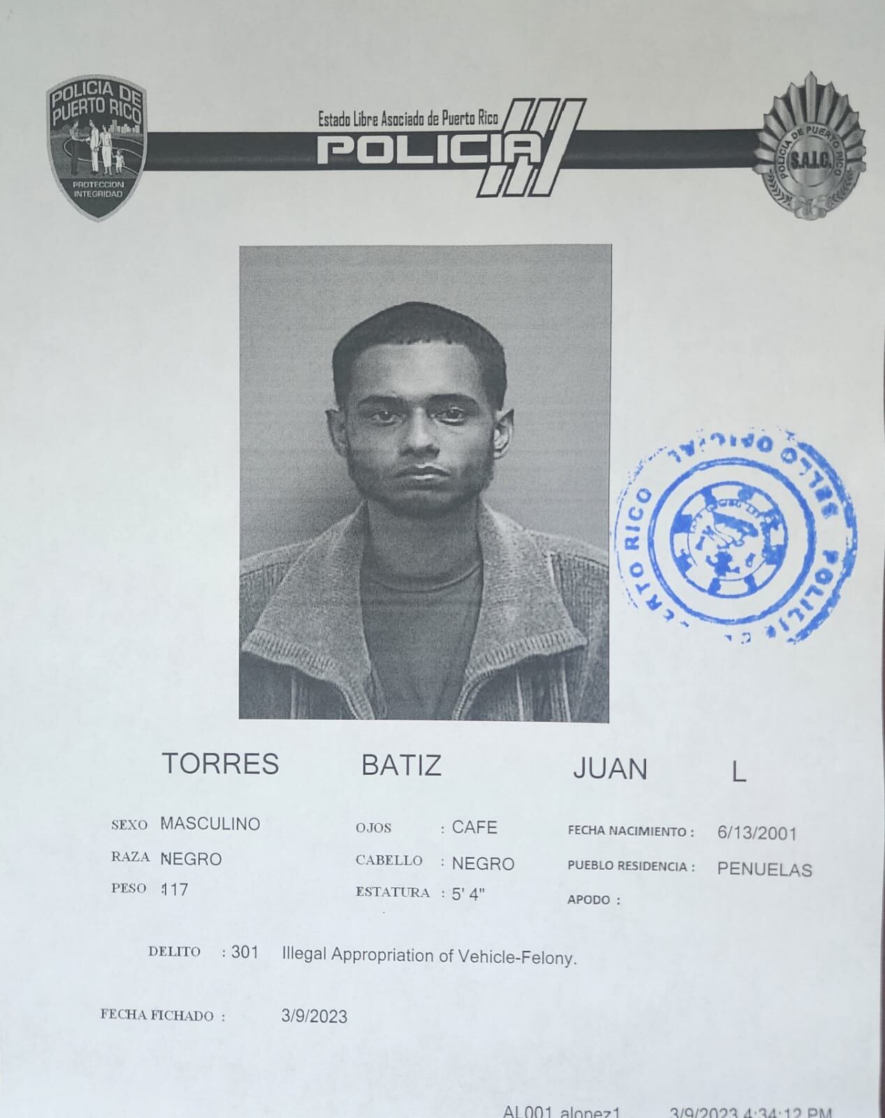 Las autoridades presentaron la tarde del jueves, en el Tribunal de Ponce, cargos criminales por robo en modalidad de carjacking, contra un hombre, identificado como Juan Luis Torres Batiz, de 21 años y residente de Peñuelas.