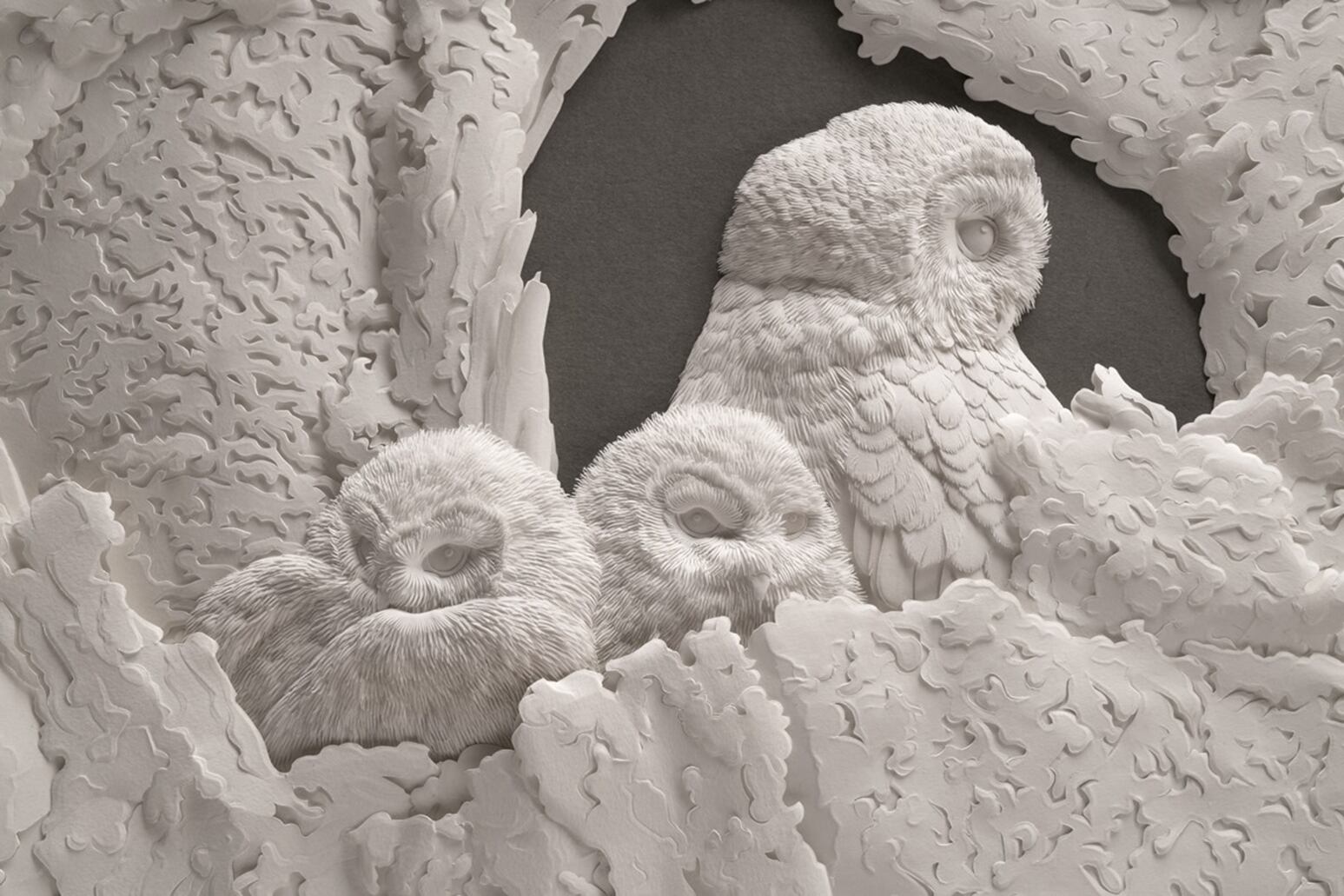 Un artista representa bellos animales en minuciosas esculturas de papel