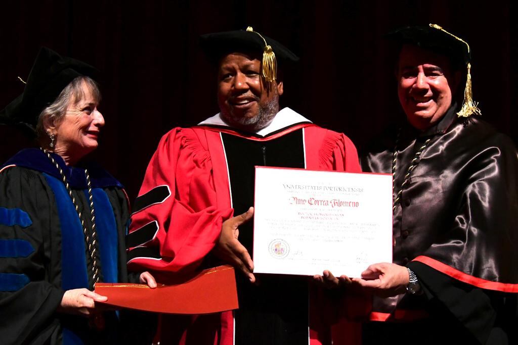 La Universidad de Puerto Rico (UPR) realizó una ceremonia en la cual otorgó un doctorado honoris causa al director del Negociado para el manejo de Emergencias (NMEAD), Nino Correa, por su labor de rescate y trabajo de servicio al país.