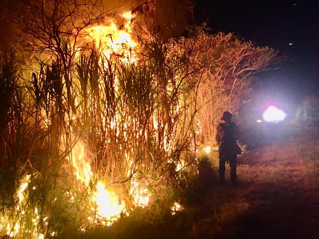 A las 8:00 p.m., las brigadas continúan los trabajos de extinción del fuego forestal y se informó que la carretera está cerrada al tránsito.
