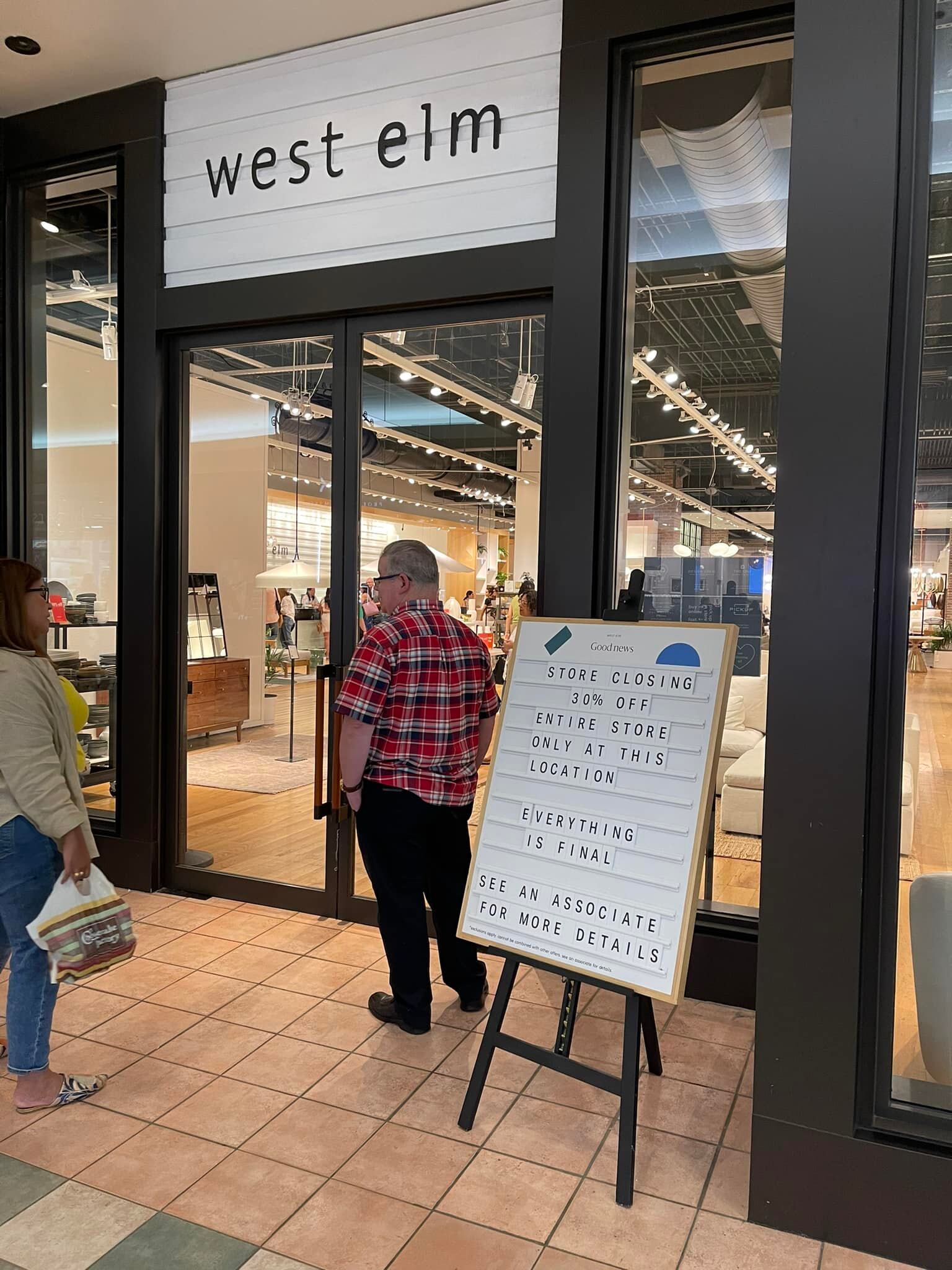 West Elm, que se encuentra en el primer nivel del centro comercial, colocó un letrero frente al local anunciando el cierre del establecimiento.