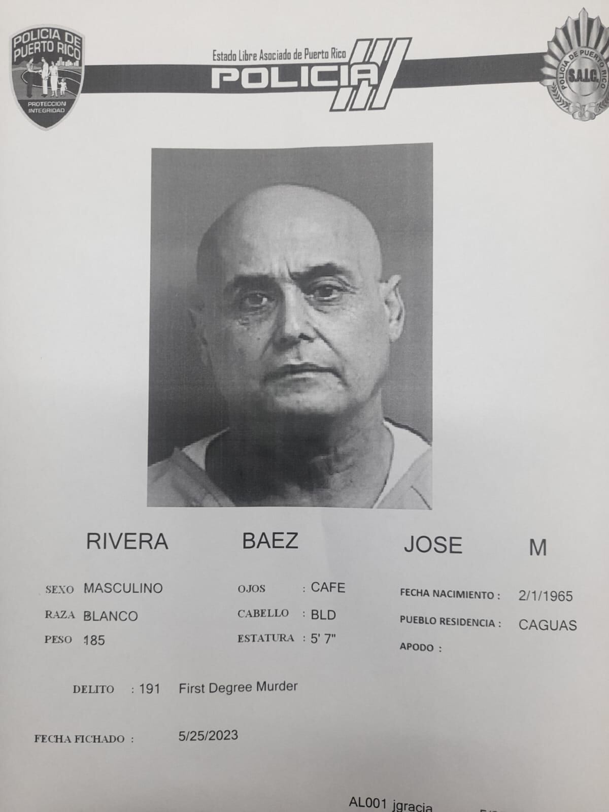 Según la investigación de la Policía, Rivera Báez hirió de bala a su esposa, Carmen E. Rodríguez Rivera, de 56 años, en medio de un incidente de violencia de género. La mujer estuvo recluida en el Centro Médico de Río Piedras hasta el 12 de mayo de 2023, cuando falleció a causa de las heridas recibidas.