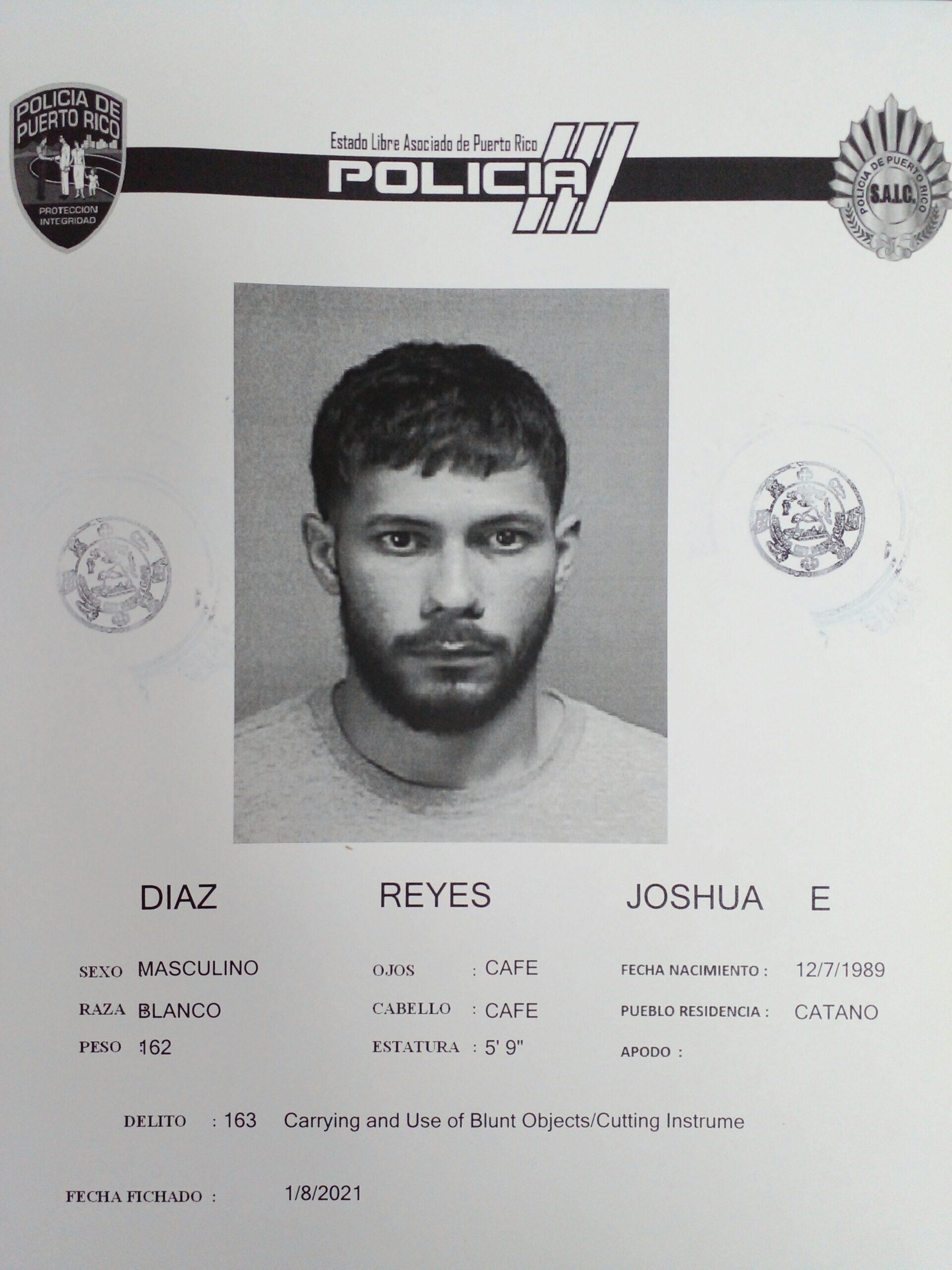 Díaz Reyes tenía expediente criminal por Ley de Armas, Sustancias Controladas y Ley 54 en los años 2015 y 2017.