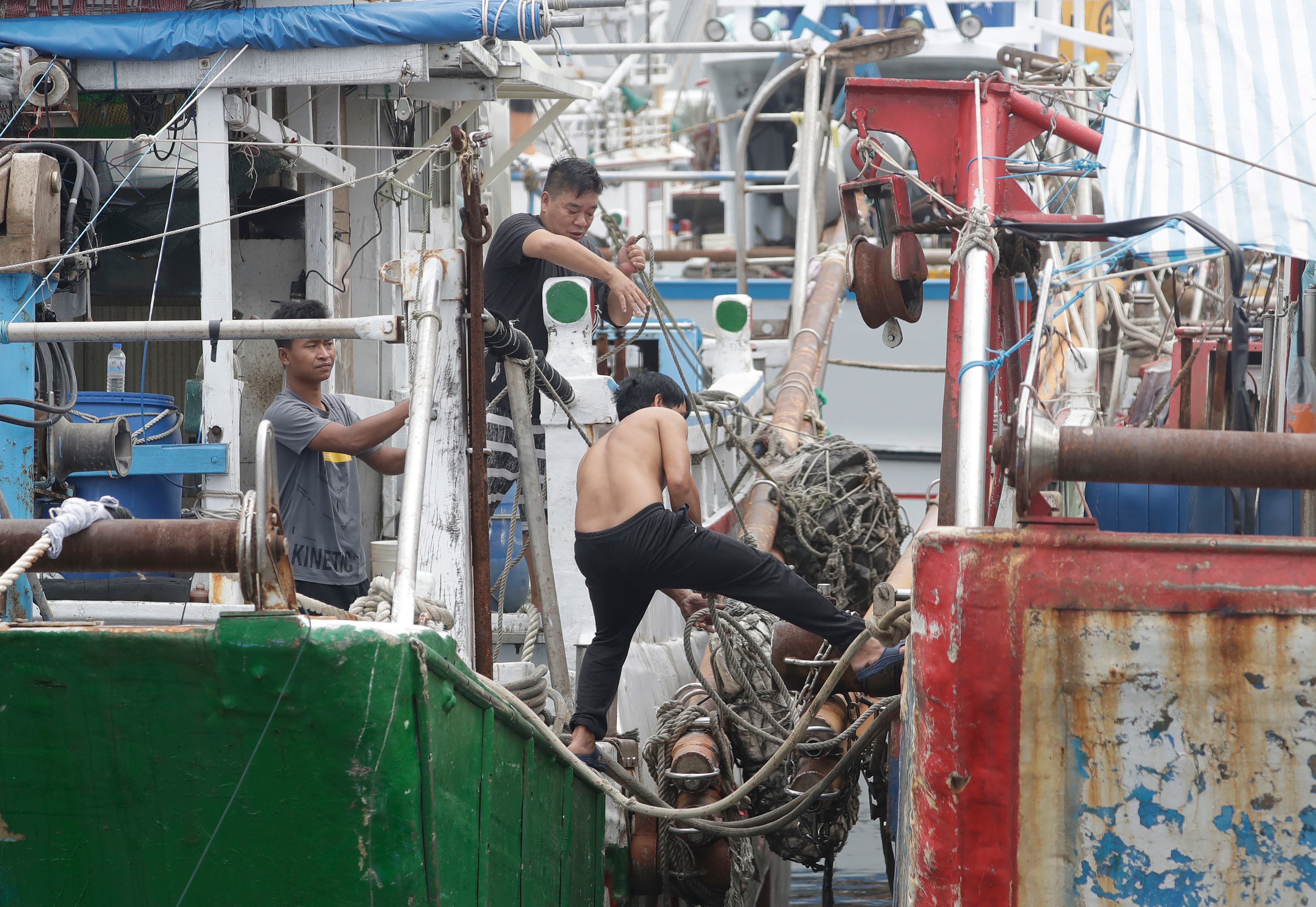 Mientras las olas se estrellaban contra la orilla, vecinos de la localidad pesquera taiwanesa de Yilan aseguraban barcos y viviendas contra la tormenta.