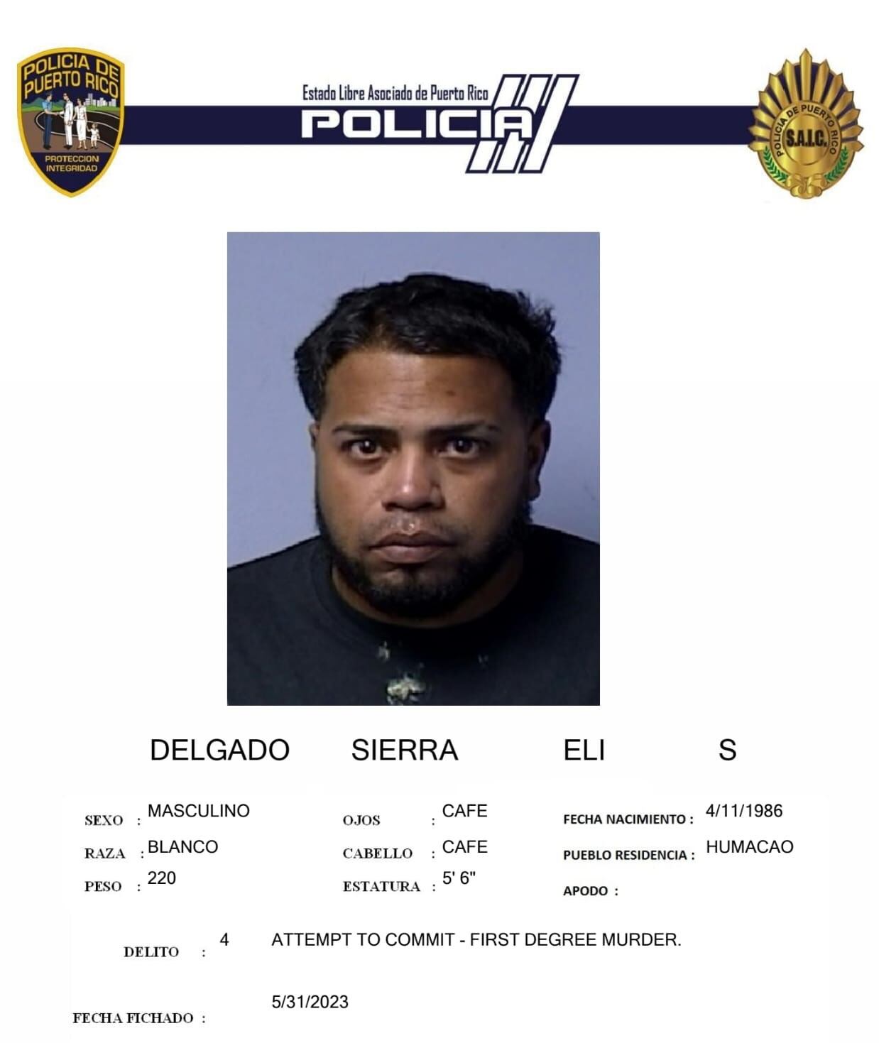 Según el reporte de la Policía, Eli Samuel Delgado Sierra, de 37 años y residente de Humacao, desde un vehículo en movimiento supuestamente le realizó varios disparos en contra de la víctima, con quien mantenía una relación sentimental. Este le provocó una herida de bala superficial en el área de la espalda. También, divulgó a un tercero material explícito de la víctima sin su consentimiento.
