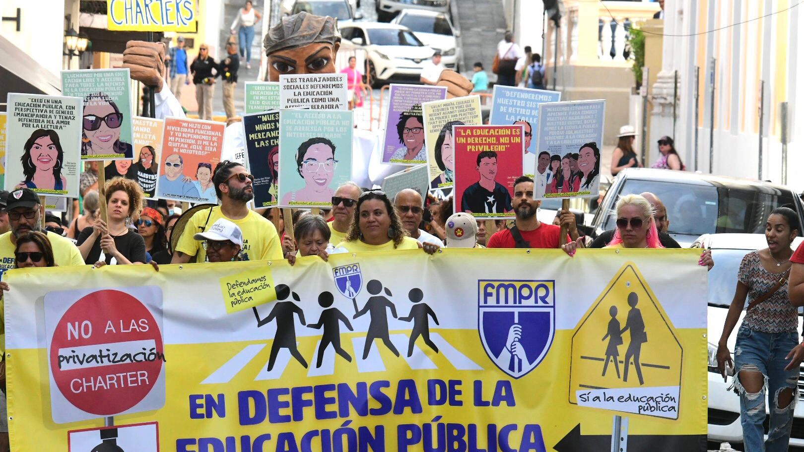 Una coalición de organizaciones convocada por la Federación de Maestros de Puerto Rico (FMPR) marchó esta tarde hasta La Fortaleza para denunciar la privatización del sistema público de enseñanza a través de la otorgación de contratos para escuelas chárter con fondos del erario.
