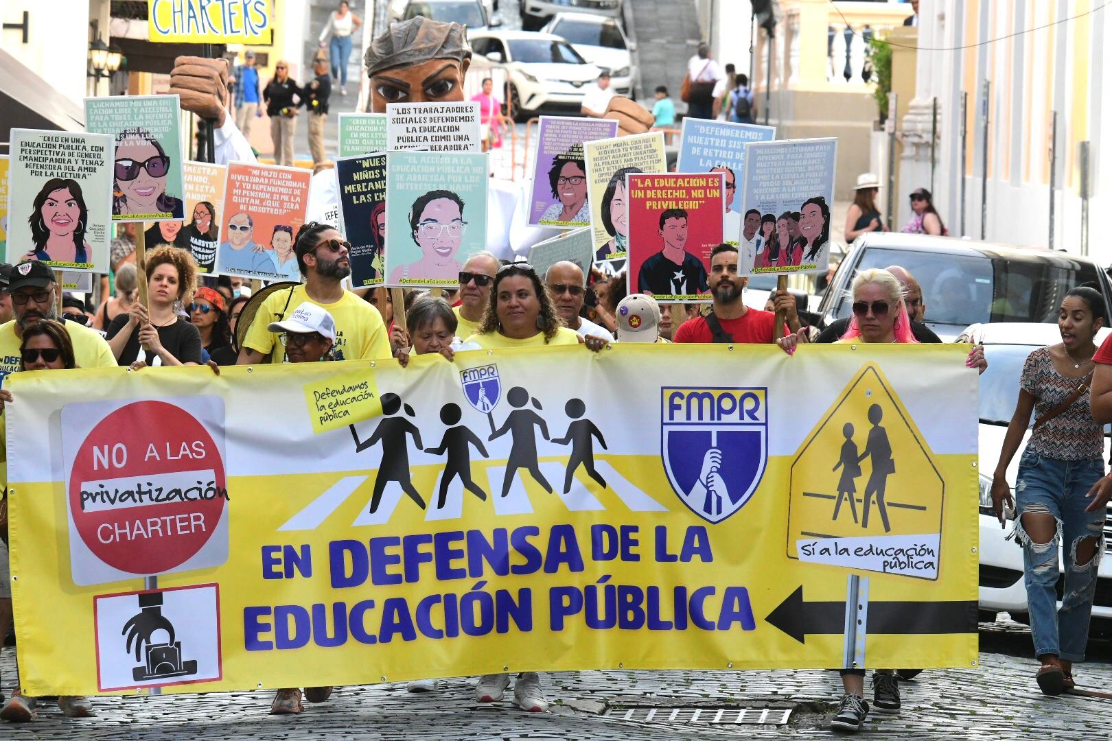 Una coalición de organizaciones convocada por la Federación de Maestros de Puerto Rico (FMPR) marchó esta tarde hasta La Fortaleza para denunciar la privatización del sistema público de enseñanza a través de la otorgación de contratos para escuelas chárter con fondos del erario.