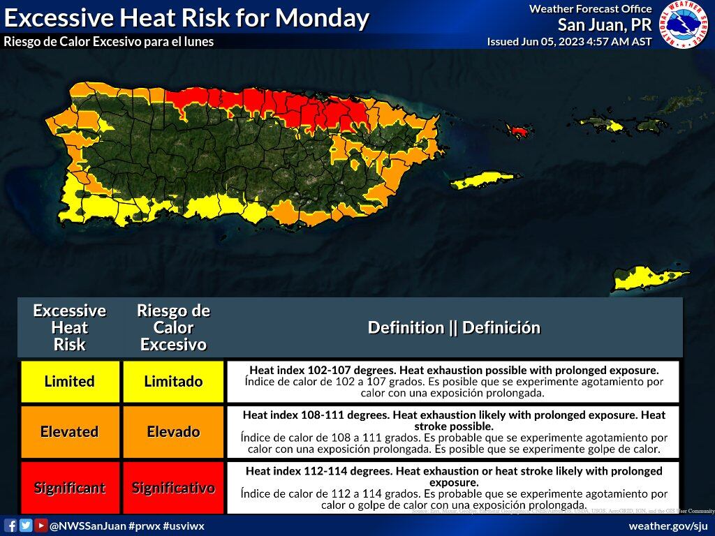 El Servicio Nacional de Meteorología (SNM) emitió este lunes, una advertencia de calor para la región de Puerto Rico, que estará vigente desde las 10 de la mañana hasta las 5 de la tarde.