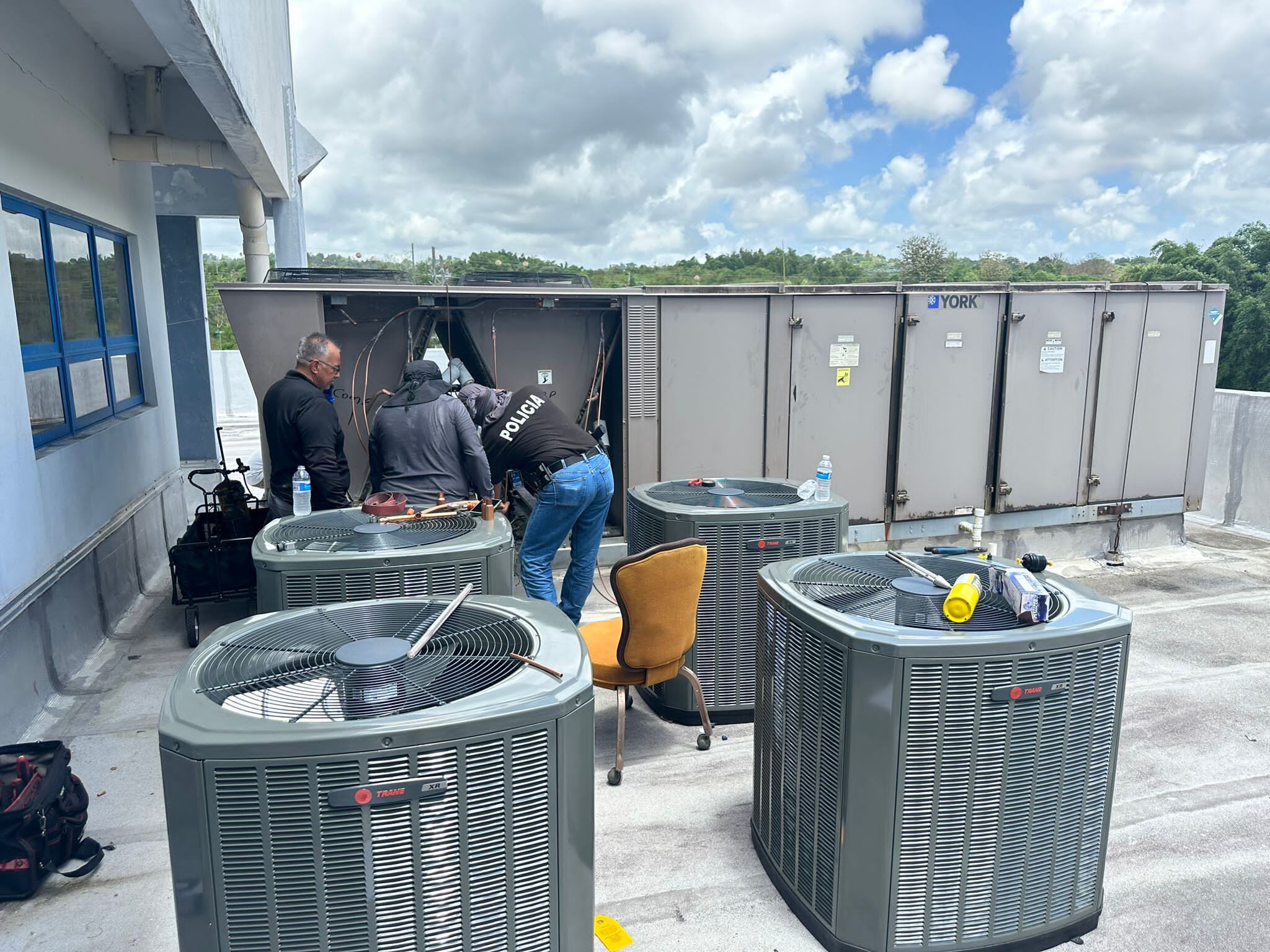 La instalación de las unidades condensadoras, de cinco toneladas cada una, está a cargo de los técnicos de refrigeración de la Policía de Puerto Rico.
