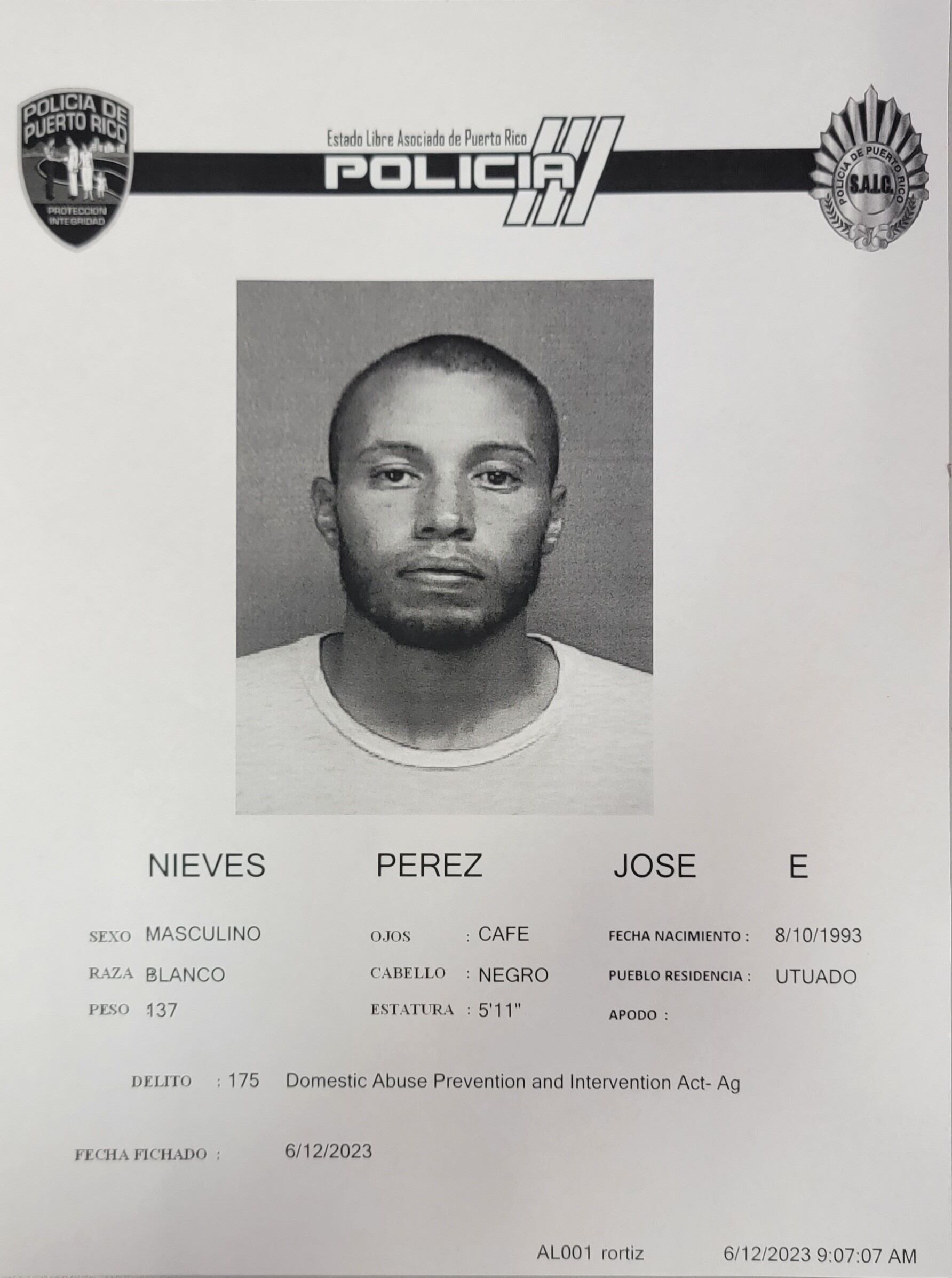 La agente Milagro Gotay Román, del precinto de Lares, bajo la supervisión del sargento Kevin Vázquez Muñoz, consultaron el caso con la fiscal Cynthia Candelaria, quien ordenó radicar un cargo por tentativa de asesinato, dos cargos por la Ley de Armas y tres cargos por la Ley 54 de Violencia Doméstica, maltrato agravado, cuando se comete contra una mujer embarazada y maltrato mediante amenaza, contra Nieves Pérez.