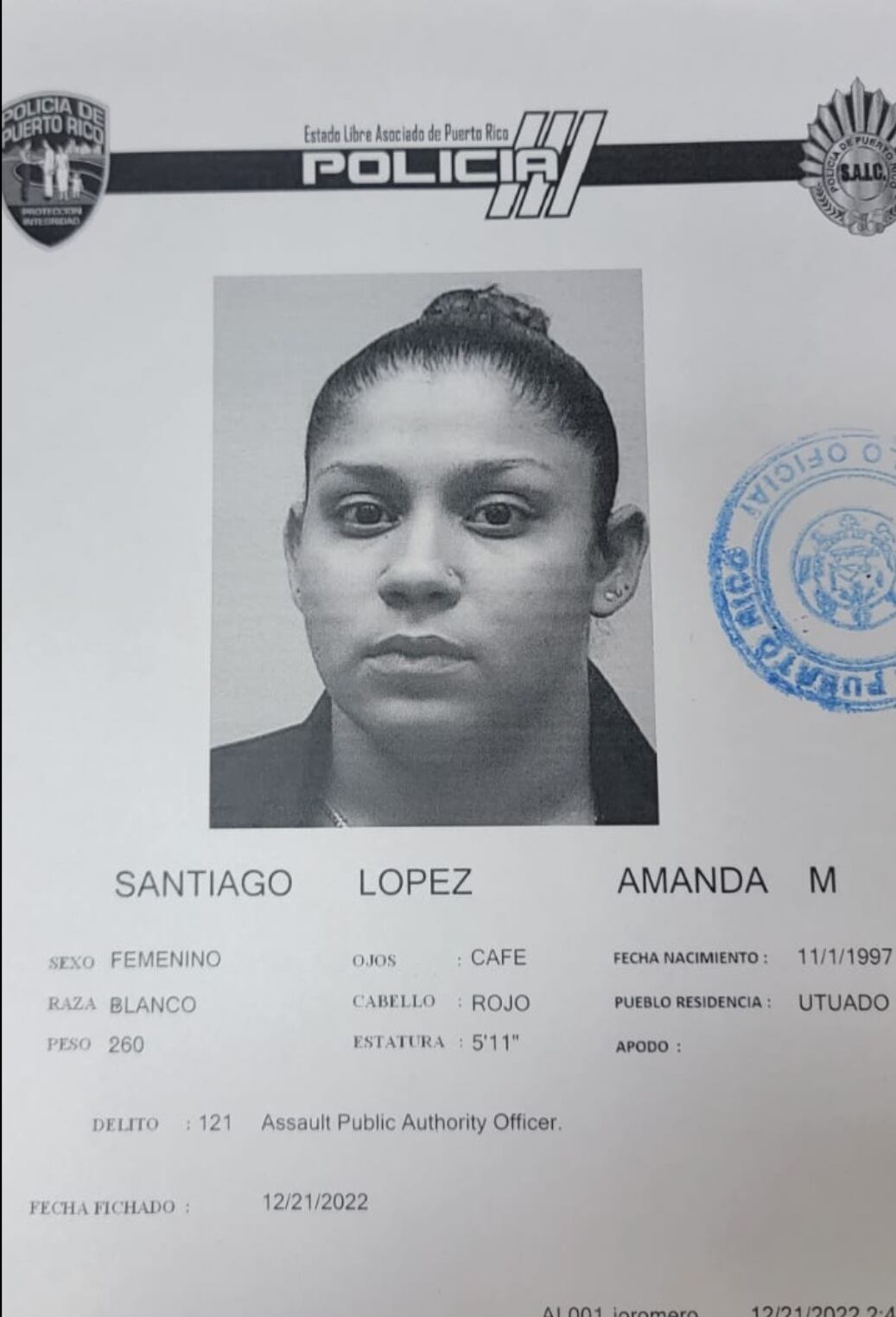 Ese 15 de diciembre, el agente Eric Matos López, adscrito a la División de Tránsito de Utuado, realizaba las funciones a las que estaba asignado de patrullaje preventivo por la calle Doctor Cueto cuando observó a una dama conduciendo en dirección contraria que se encontraba hablando por el celular sin el dispositivo de manos libres. Además, observó que el cristal pequeño fijo del lado de conductor tenía tintes en violación a la disposiciones de ley. Ante estas infracciones de la Ley #22 de Tránsito, le dio el alto con biombo y sirena para que se detuviera, pero esta hizo caso omiso.