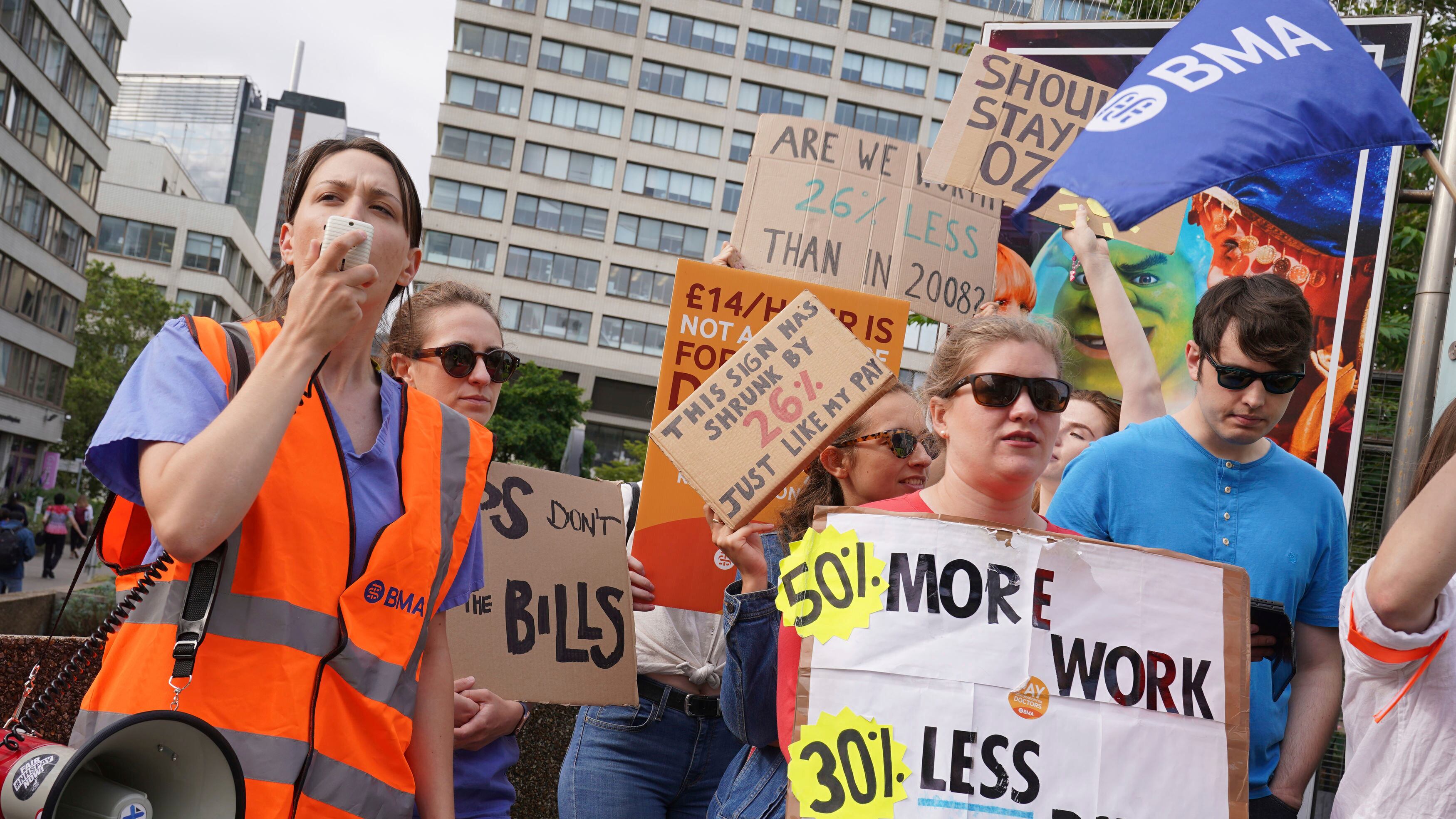 La Asociación Médica Británica, su agrupación profesional, ha pedido un incremento salarial del 35% para igualar el salario de los médicos con poca experiencia a los niveles de 2008, teniendo en cuenta la inflación. Desde entonces, la carga de trabajo de los aproximadamente 75.000 médicos jóvenes ha crecido conforme las listas de espera de los pacientes batían récords tras la pandemia del coronavirus.