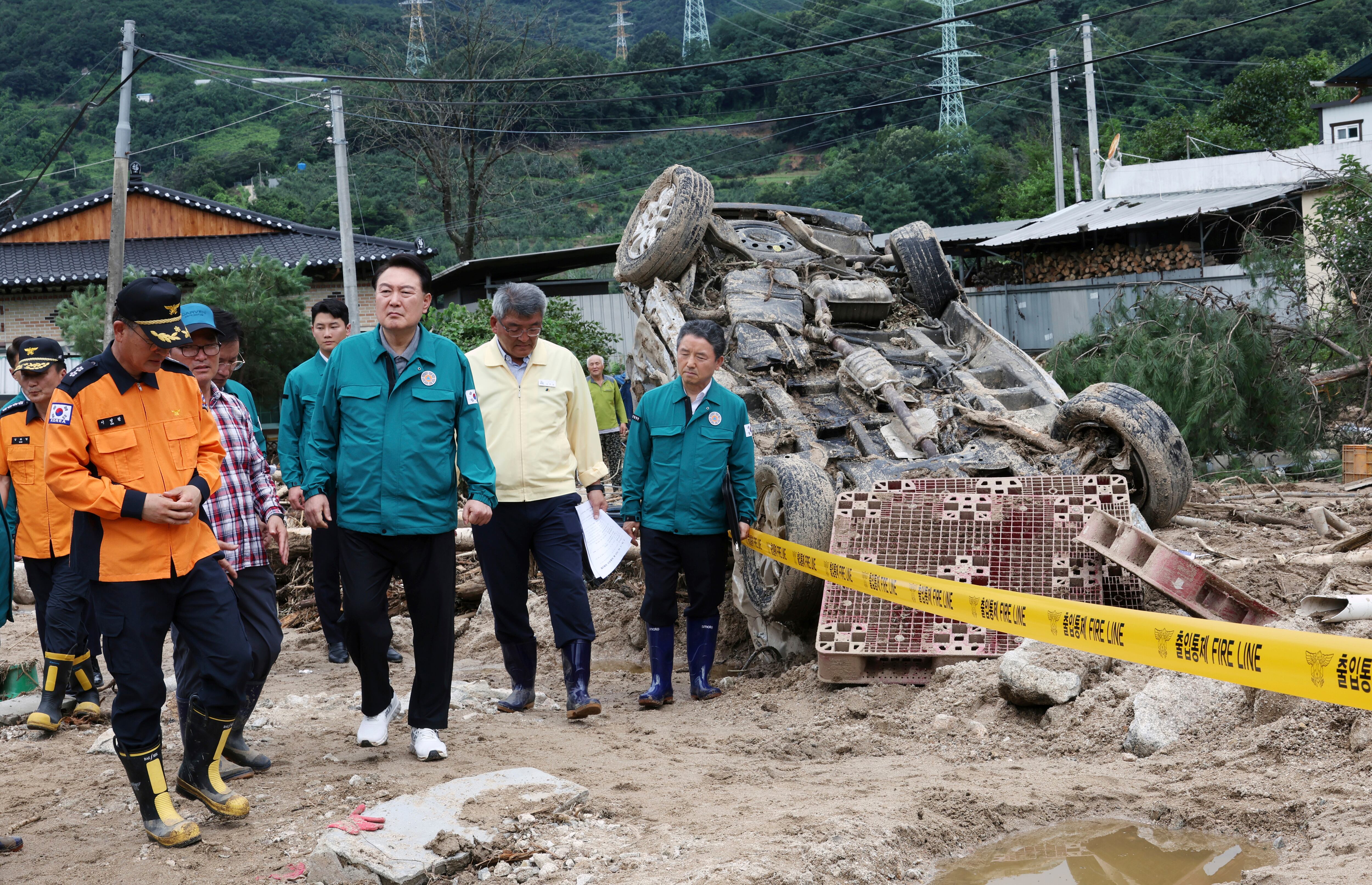 El presidente de Corea del Sur, Yoon Suk Yeol, celebró una reunión de emergencia del gobierno a su regreso de un viaje a Europa y Ucrania. Pidió a las autoridades que designaran las zonas más afectadas como zonas de desastre para asignar más recursos financieros y logísticos a las labores de ayuda.