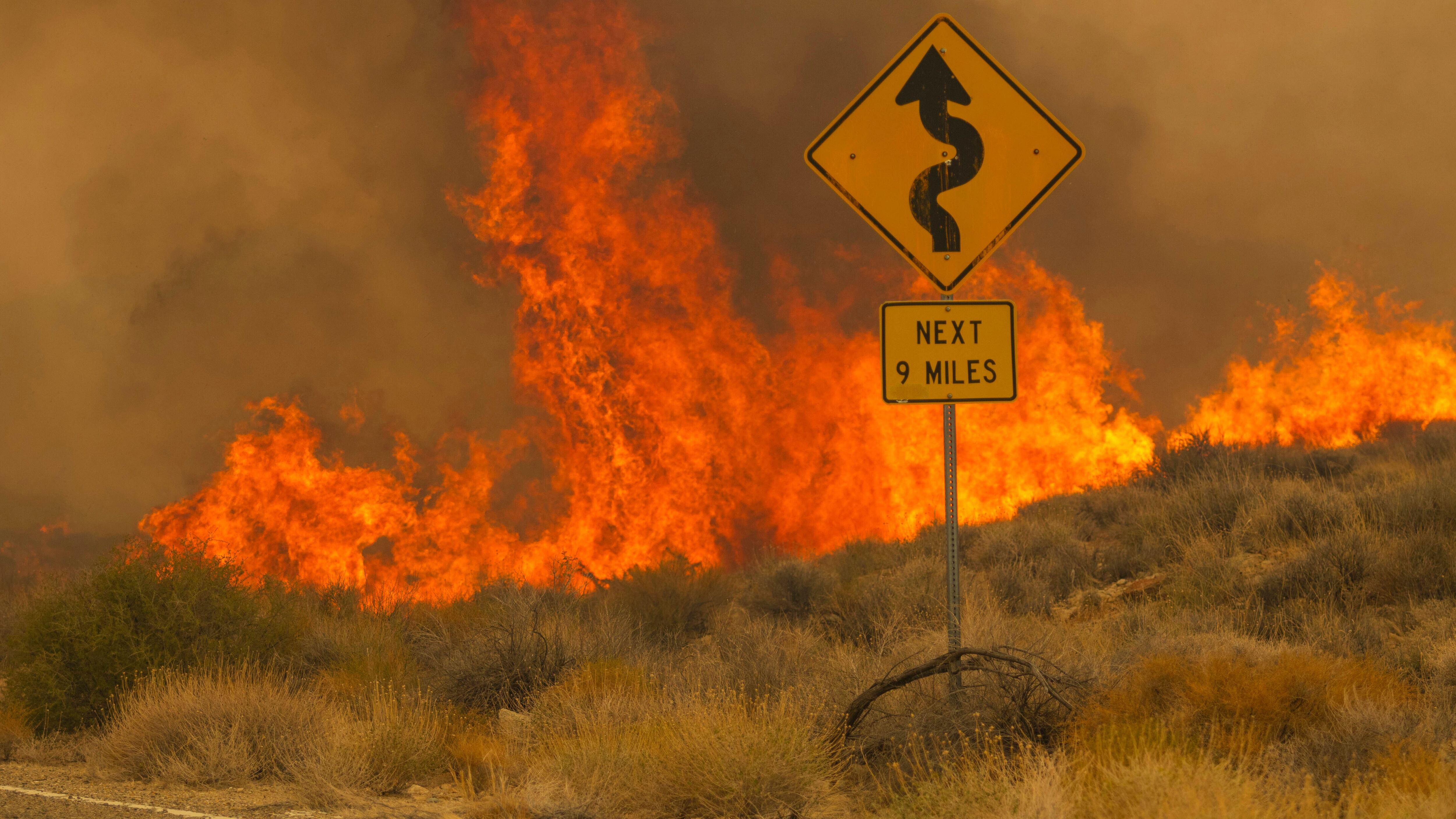 RESERVA NACIONAL MOJAVE, California, EE.UU. (AP) — Los bomberos contuvieron parcialmente el martes un enorme incendio que comenzó en una reserva de vida silvestre en California y se extendió a Nevada, donde el humo ocultó el sol en Las Vegas, mientras las llamas consumían decenas de miles de hectáreas de matorrales del desierto.