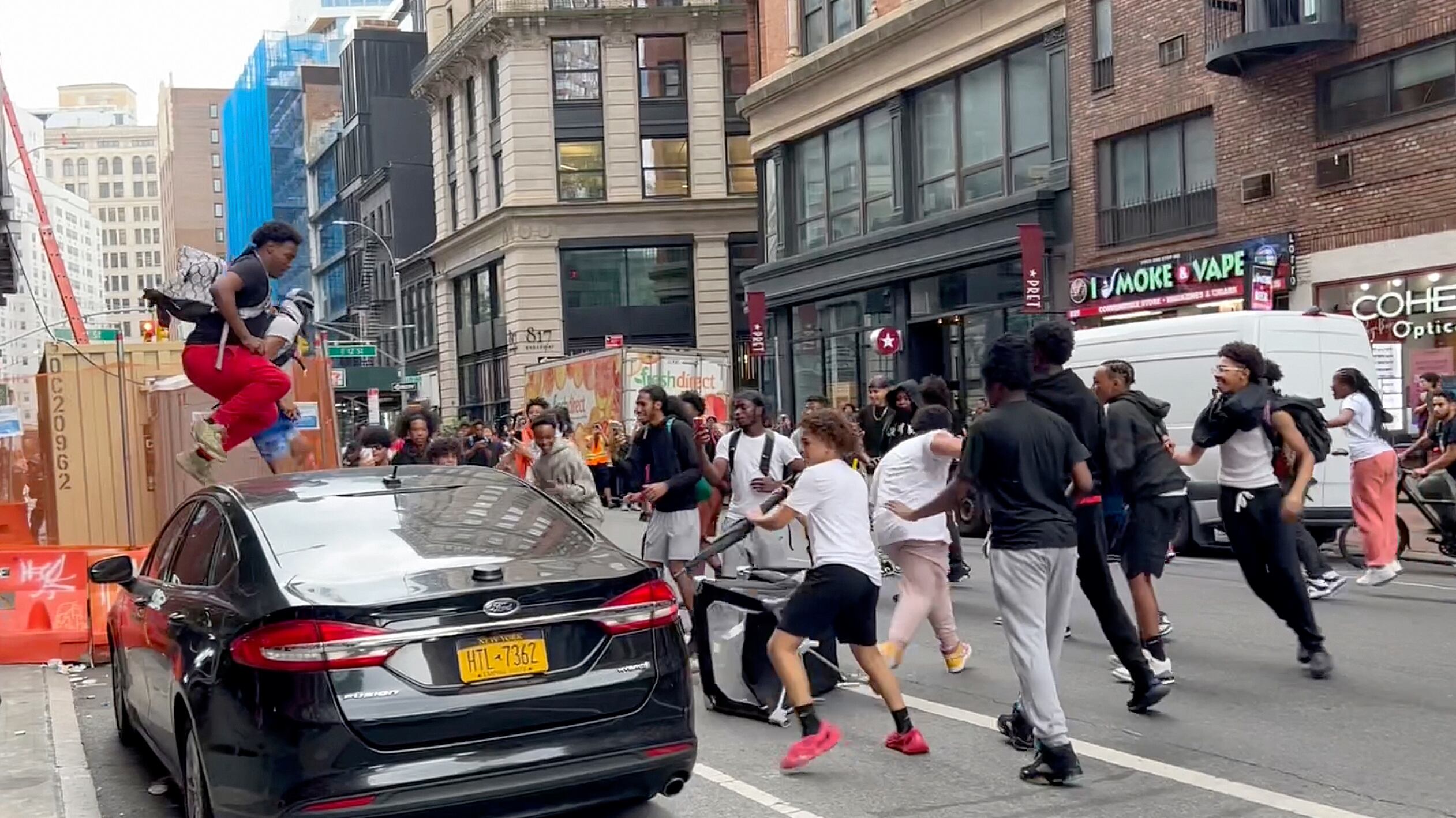 Las imágenes aéreas de los noticieros de televisión mostraban el viernes a una multitud que se subía a vehículos, lanzaba sillas, propinaba puñetazos y escalaba estructuras en el parque. Adolescentes gritaban y lanzaban objetos contra las ventanillas de los coches y corrían por las calles.
