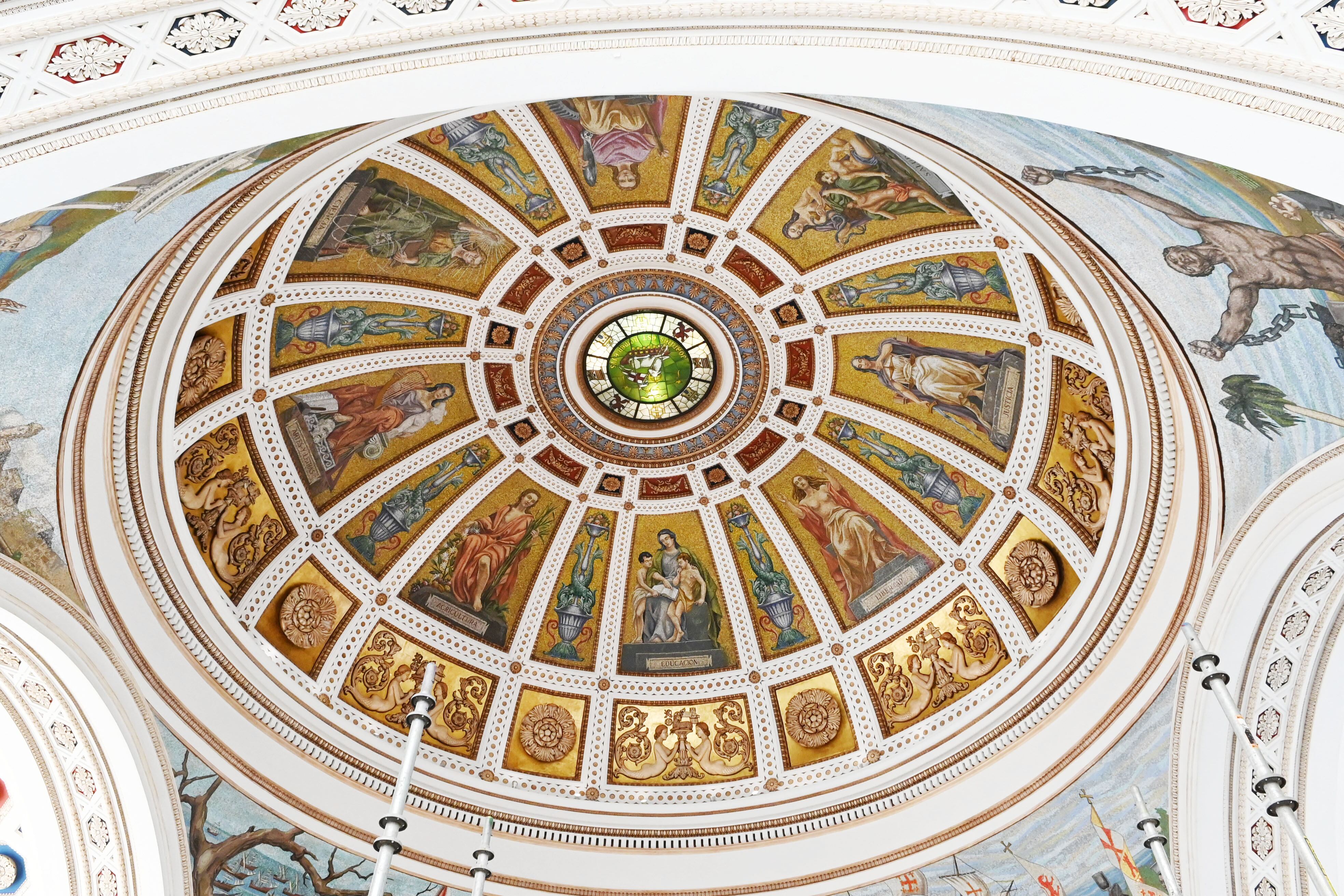 Las restauraciones abordaron tanto el interior como el exterior de la cúpula. Los mosaicos venecianos en el interior, instalados en la década de 1960 bajo la dirección del artista italiano Gino Garibaldi, habían sufrido un deterioro notable. Las filtraciones de agua provocaron grietas en el domo interior, y la corrosión y la humedad dañaron los mosaicos y otros elementos ornamentales.