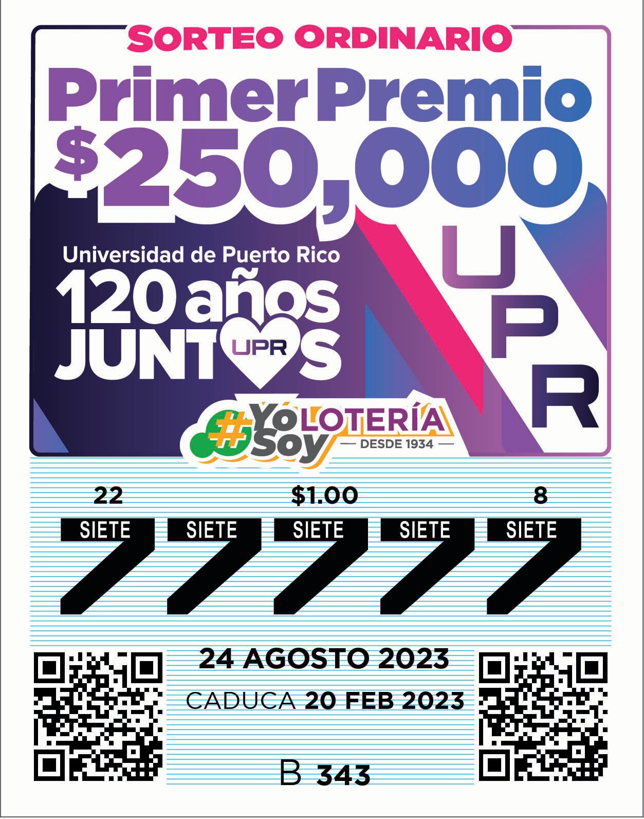 “Agradecemos a la Lotería de Puerto Rico por destacar nuestra la celebración de los 120 años de nuestra institución en un billete conmemorativo. Cabe destacar, que cualquier aportación de la ciudadanía por medio de la Ley del Fondo Especial para Becas de la Universidad de Puerto Rico (Ley Núm. 44 de 22 de enero de 2018), se destina un tres por ciento (3%) de los recaudos por concepto de los diferentes juegos de la Lotería de Puerto Rico al Fondo Especial para Becas de la Universidad de Puerto Rico. Esto nos ayuda a sufragar los costos de estudiantes que tengan necesidad económica. Las becas son extensivas a todos los niveles académicos dentro de la Universidad de Puerto Rico, no empece la cantidad de créditos que el solicitante curse, entiéndase desde los programas de estudios sub-graduados hasta los post-graduados, sin excluir las escuelas de estudios posgrados como lo son Derecho y Medicina, entre otros”, expresó el presidente de la UPR.