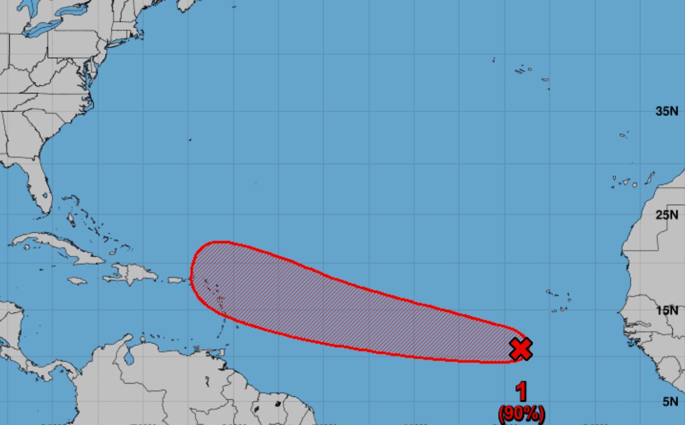 En el informe de las 8pm, la agencia señaló que las condiciones son propicias para su fortalecimiento continuo. El sistema se desplaza hacia el oeste-noroeste a una velocidad de 15-20 mph.