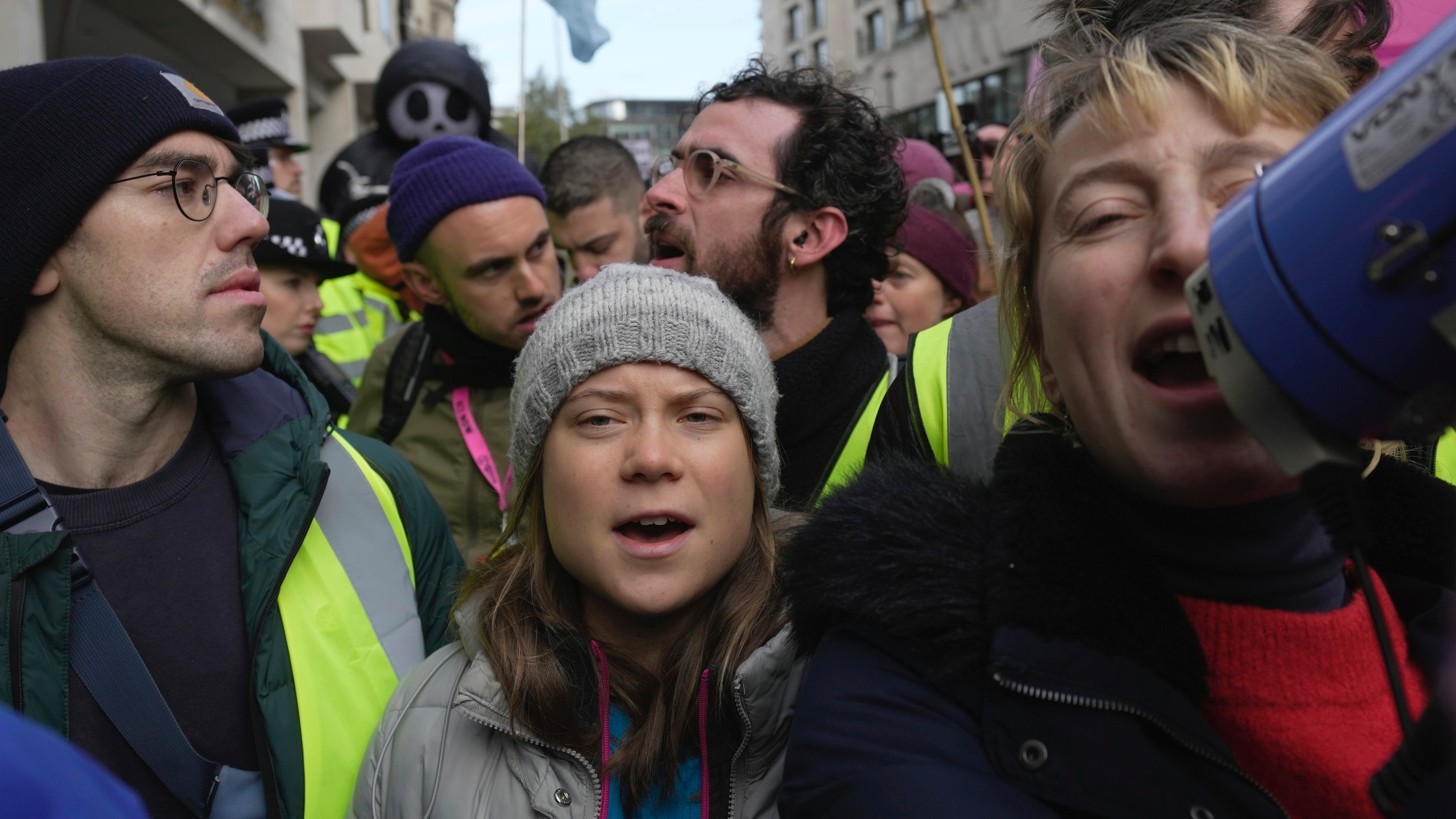 LONDRES (AP) — Greta Thunberg se sumó a decenas de activistas ambientales frente a un hotel céntrico en Londres donde se realizaba un foro de directivos del petróleo y el gas.