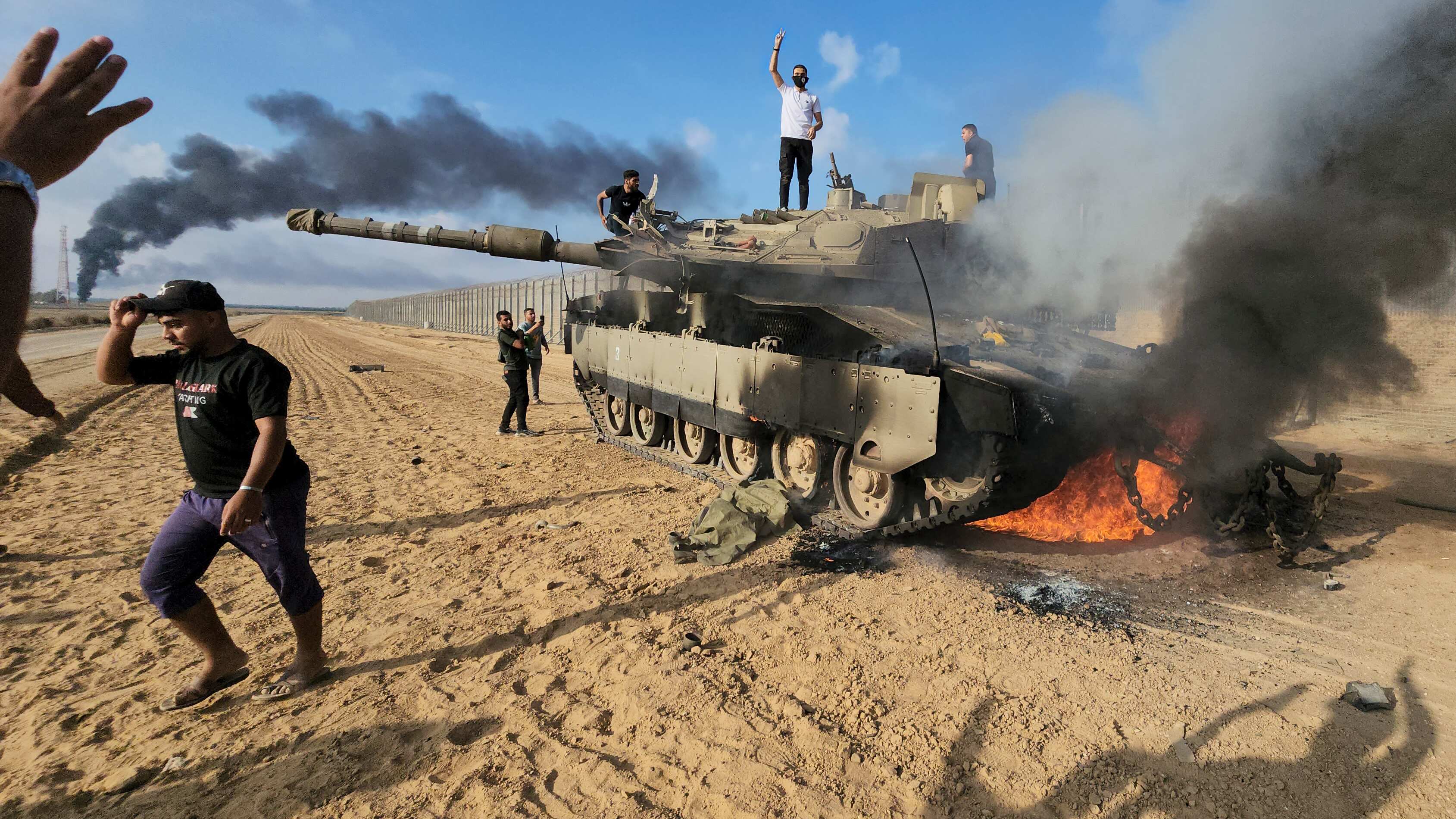 Las primeras escenas de hombres palestinos levantando los brazos en señal de victoria sobre un taque israelí incendiado durante el rápido asalto dan paso rápidamente a otras de devastación: cuadras enteras en Gaza reducidas a páramos en blanco y negro mientras los incesantes misiles iluminan el cielo de la noche con bolas de llamas e incandescentes nubes de humo.