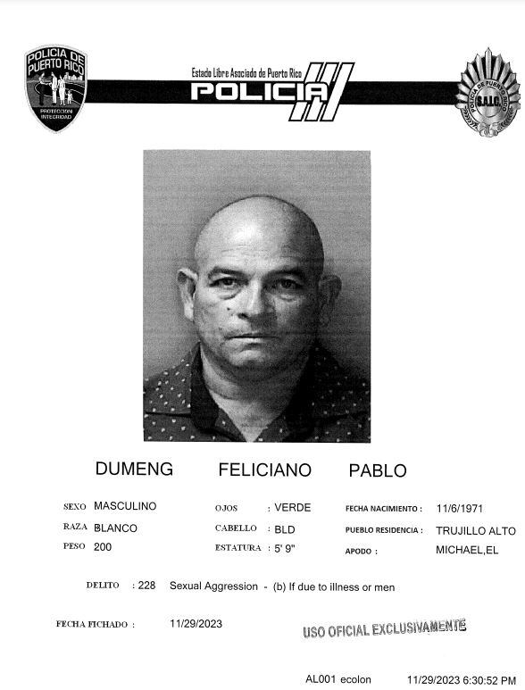 Dumeng Feliciano, quien se desempeña como agente del Negociado de la Policía de Puerto Rico, supuestamente sometió a la víctima a varios eventos de actos lascivos y de agresión sexual desde enero hasta abril de 2021, según surge de la investigación realizada por la agente Berenice Santana, del Negociado de la Policía.