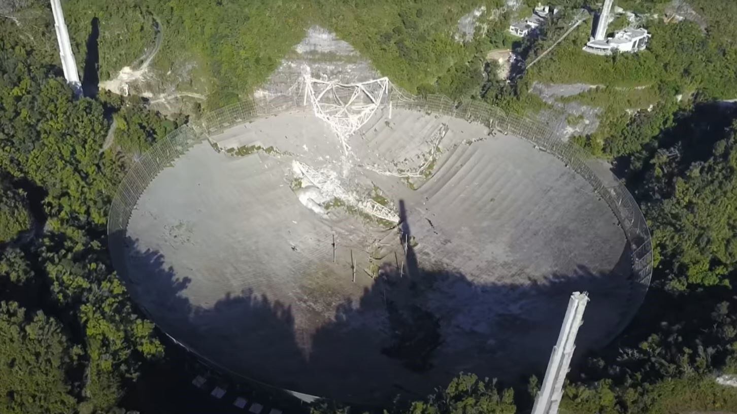 En agosto de 2020, el célebre observatorio ya sufrió la rotura de un cable que formaba parte de la estructura de soporte del radiotelescopio. Otro cable se rompió el 8 de noviembre, dañando a otros y al propio plato deflector.