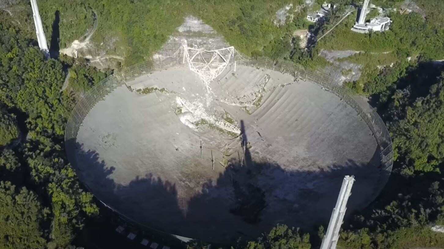 En consecuencia, el 19 de noviembre, la National Science Foundation (NSF) anunció que el radiotelescopio sería desmantelado por motivos de seguridad. El 1 de diciembre el colapso de la plataforma de instrumentos y su impacto contra el enorme plato deflector arruinaron anticipadamente la instalación.