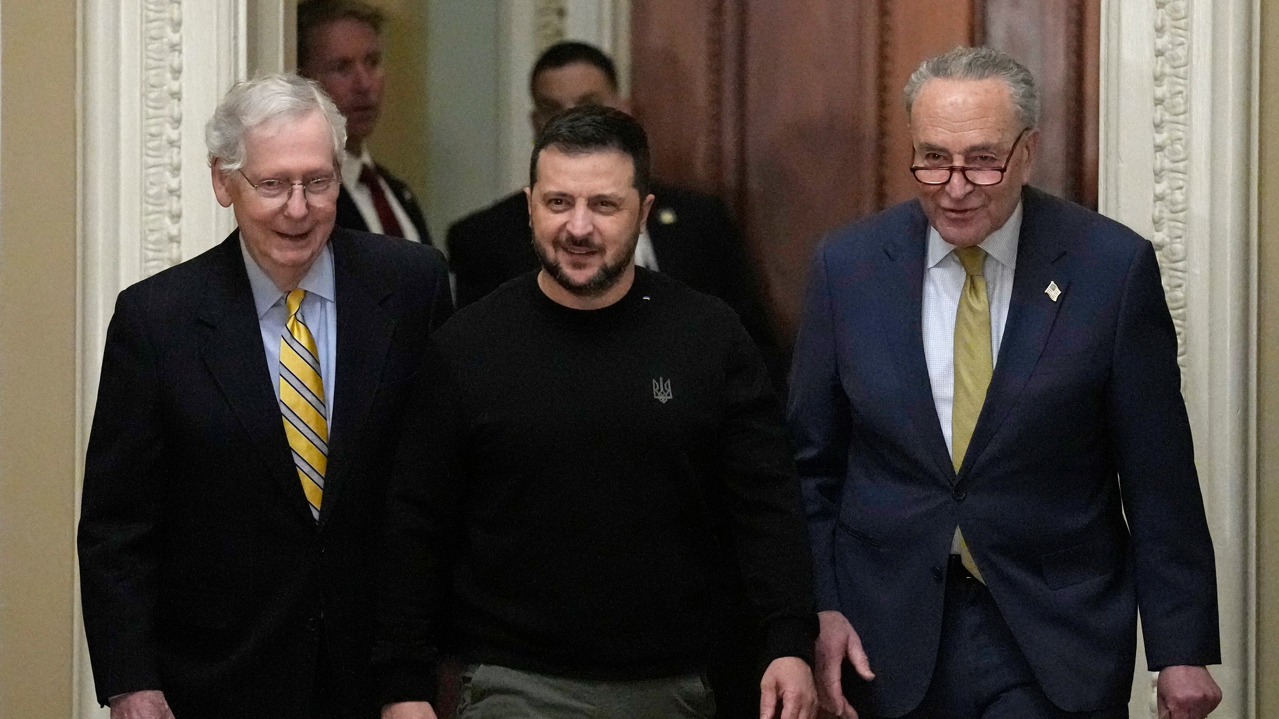 Pero las perspectivas de un acuerdo sobre Ucrania se volvieron sombrías en el Capitolio en la víspera del arribo de Zelenskyy, quien no hizo declaraciones al iniciar una reunión a puertas cerradas con los senadores. Su visita siguiente era al nuevo presidente de la cámara baja, Mike Johnson, y luego a Biden en la Casa Blanca.