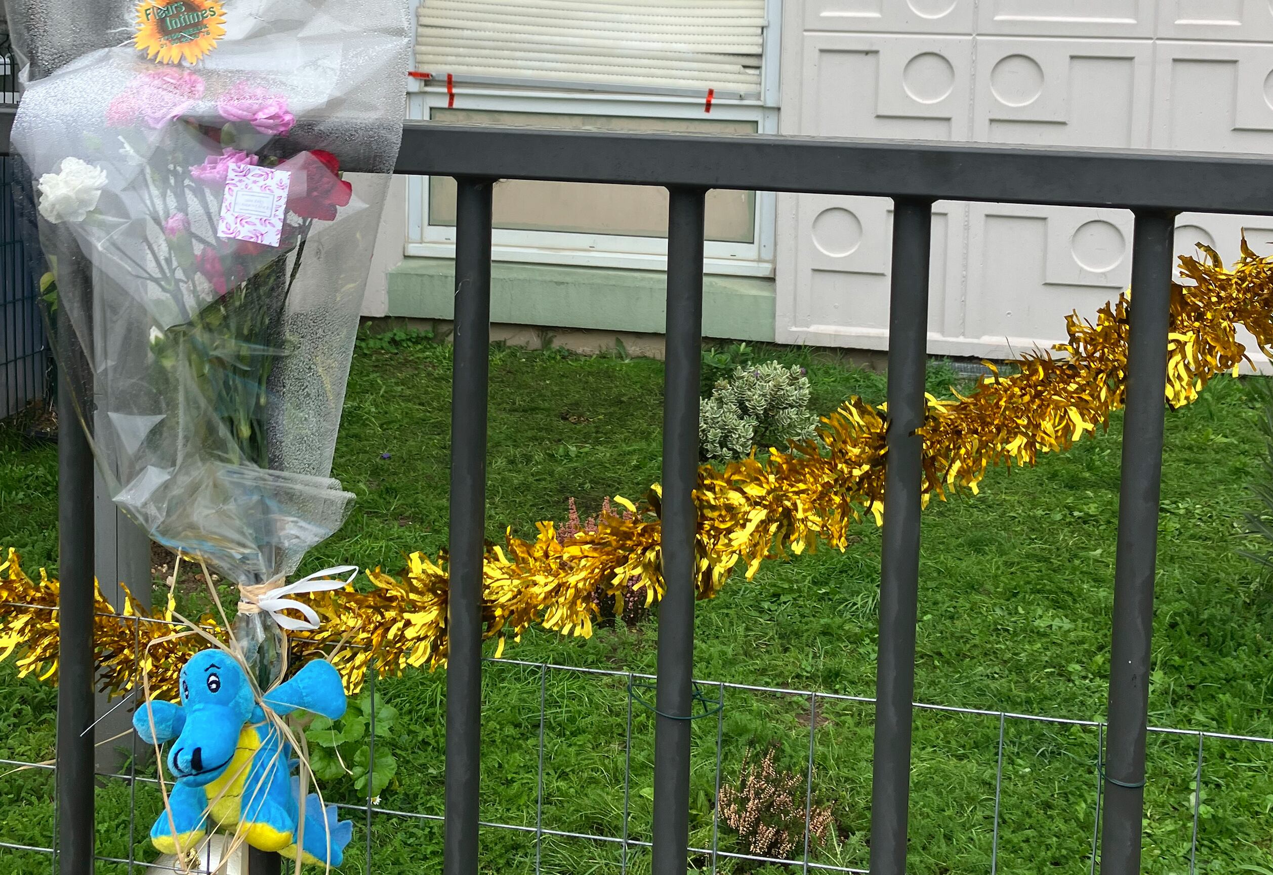 El martes había flores, un peluche y adornos navideños en la cerca frente al edificio residencial en honor a las víctimas. Las ventanas del apartamento estaban cerradas.