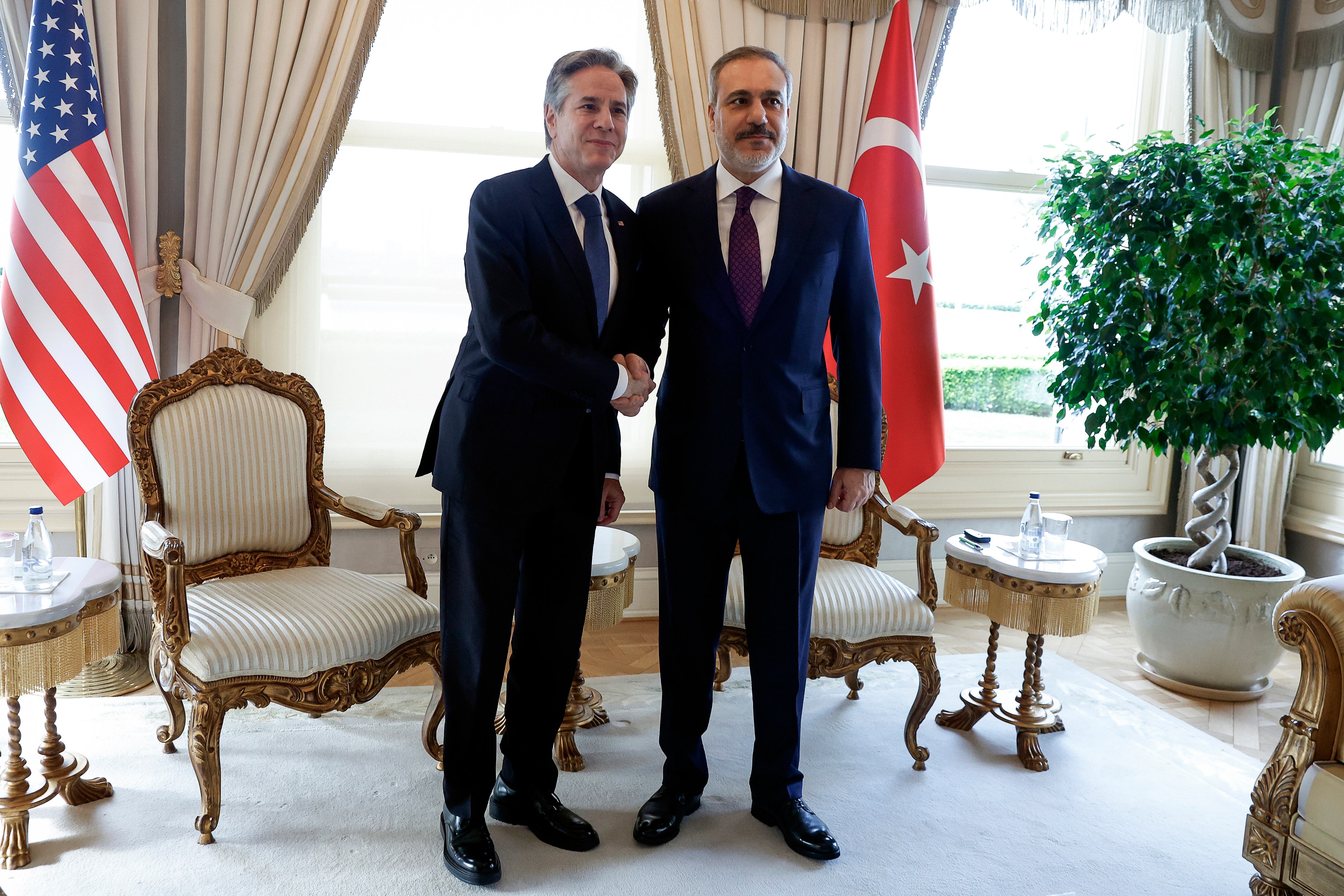 Blinken se reunió el sábado con el presidente de Turquía, Recep Tayyip Erdogan, y con el ministro de Exteriores, Hakan Fidan, para discutir qué pueden hacer Ankara y otras naciones para ejercer su influencia, especialmente sobre Irán y sus representantes, con el objetivo de rebajar las crecientes tensiones, acelerar la entrega de ayuda humanitaria en Gaza e iniciar la planificación de la reconstrucción y la gobernanza del enclave después de que gran parte del territorio haya quedado reducido a escombros luego de tres meses de intensos bombardeos israelíes.