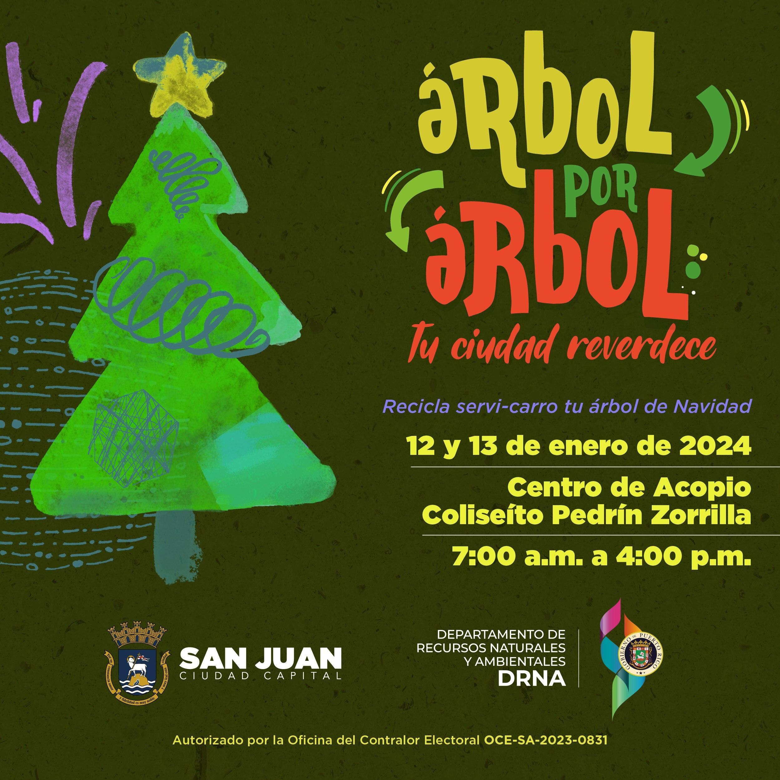 El alcalde de San Juan, Miguel Romero Lugo y la secretaria del Departamento de Recursos Naturales y Ambientales (DRNA), Anaís Rodríguez Vega, anunciaron la celebración del evento “Árbol X Árbol – Tu Ciudad Reverdece”, una iniciativa de política pública ambiental dirigida a que los residentes de la Ciudad Capital y de municipios cercanos reciclen su árbol de Navidad y así evitar que terminen en los vertederos.