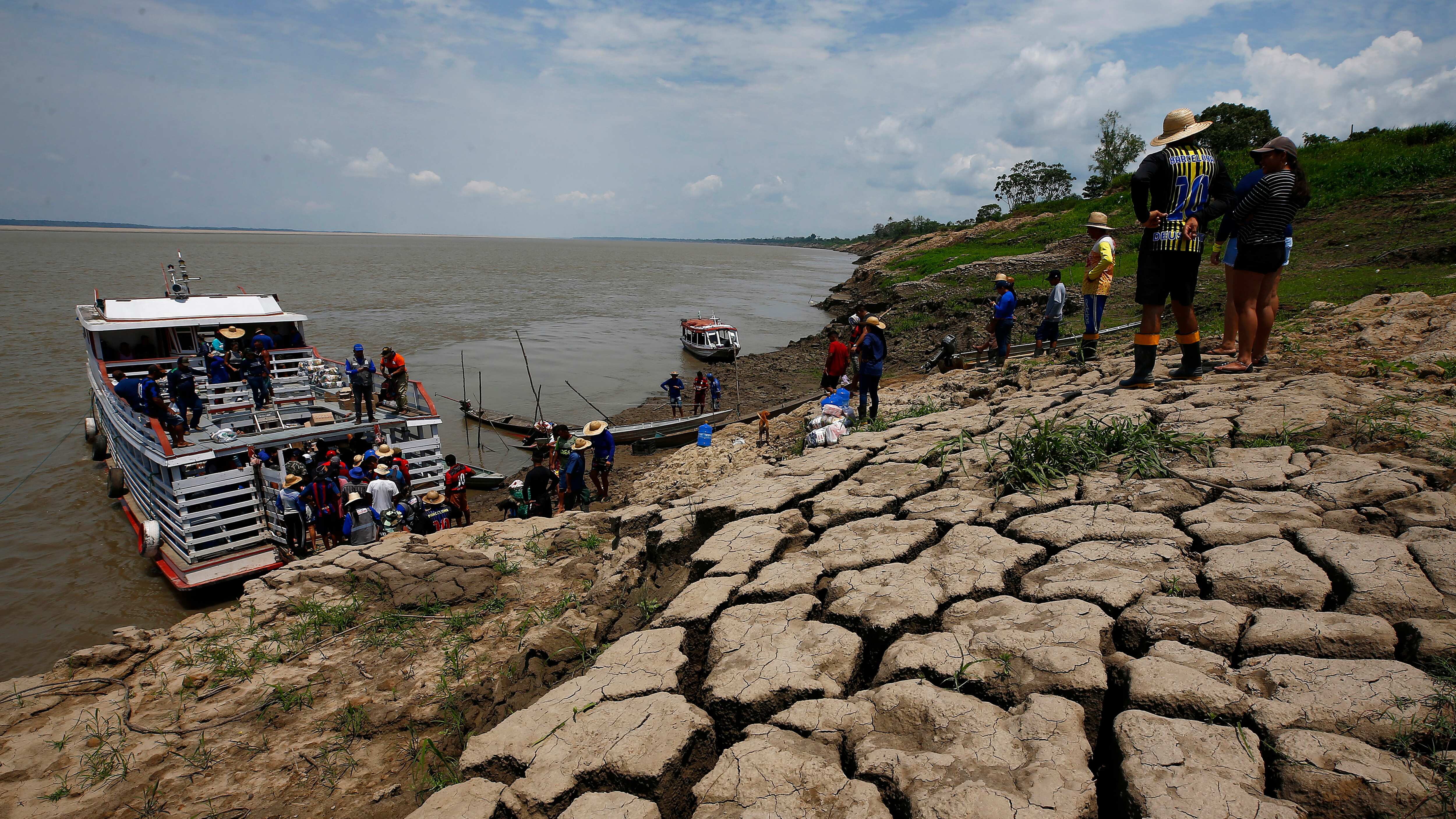 En el lago Tefé de Brasil, la temperatura del agua alcanzó los 39,1 grados Celsius (102,4 grados Fahrenheit), y es probable que haya provocado la muerte de más de 150 delfines rosados y tucuxi, dos especies en peligro de extinción. A lo largo del río Amazonas, los habitantes vieron cómo sus cultivos se marchitaban y cómo los peces desaparecían, y ante la imposibilidad de viajar debido al bajo nivel de los ríos, formaron largas filas en las riberas para recibir suministros de ayuda. En Manaos, la ciudad más grande de la región, los más de 2 millones de residentes padecieron durante meses el humo de los incendios forestales.