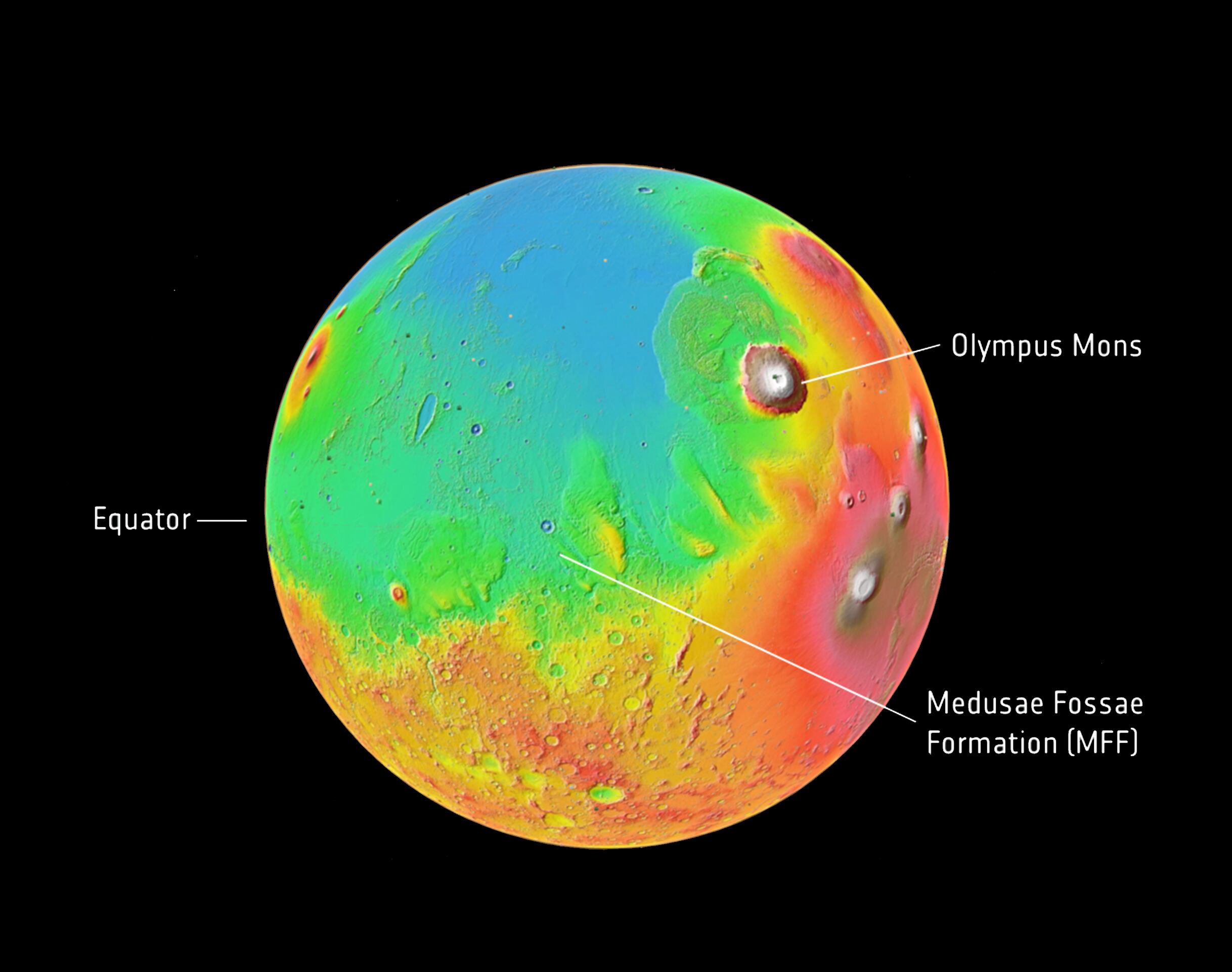 1.5-2.7m de profundidad es la capa de agua con la que el hielo encerrado en la Formación Medusae Fossae cubriría Marte si se fundiera.