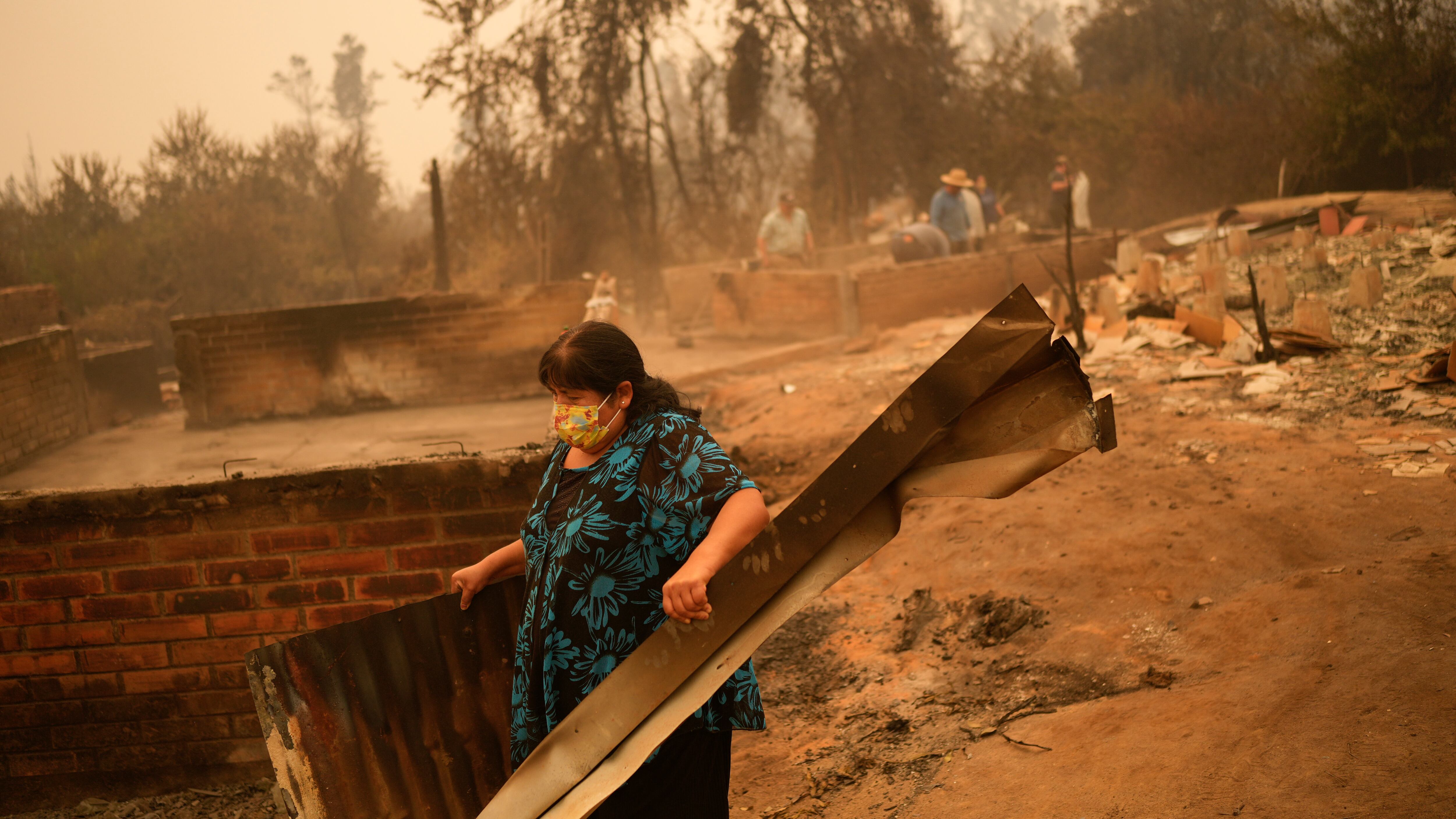 Los vecinos afectados por los incendios, que han causado daños a miles de viviendas seguían el domingo removiendo escombros.