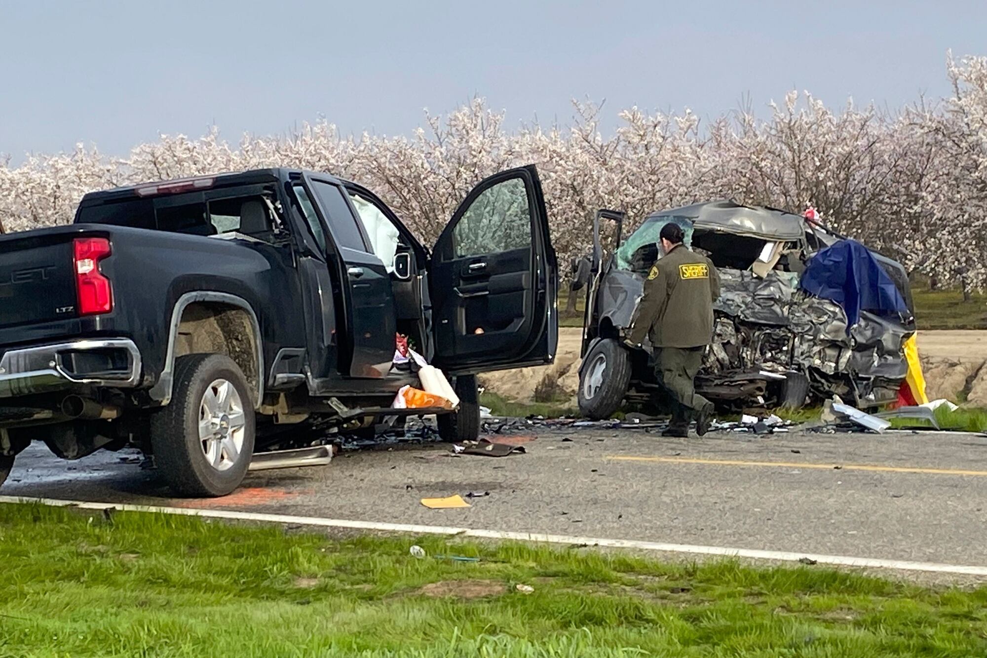 El accidente, ocurrido a las 6:15 de la mañana, dejó la furgoneta casi completamente aplastada entre almendros en flor cerca de la localidad de Madera, a unos 40 kilómetros (25 millas) de Fresno, según informó el agente de la Patrulla de Carreteras de California Javier Ruvalcaba.