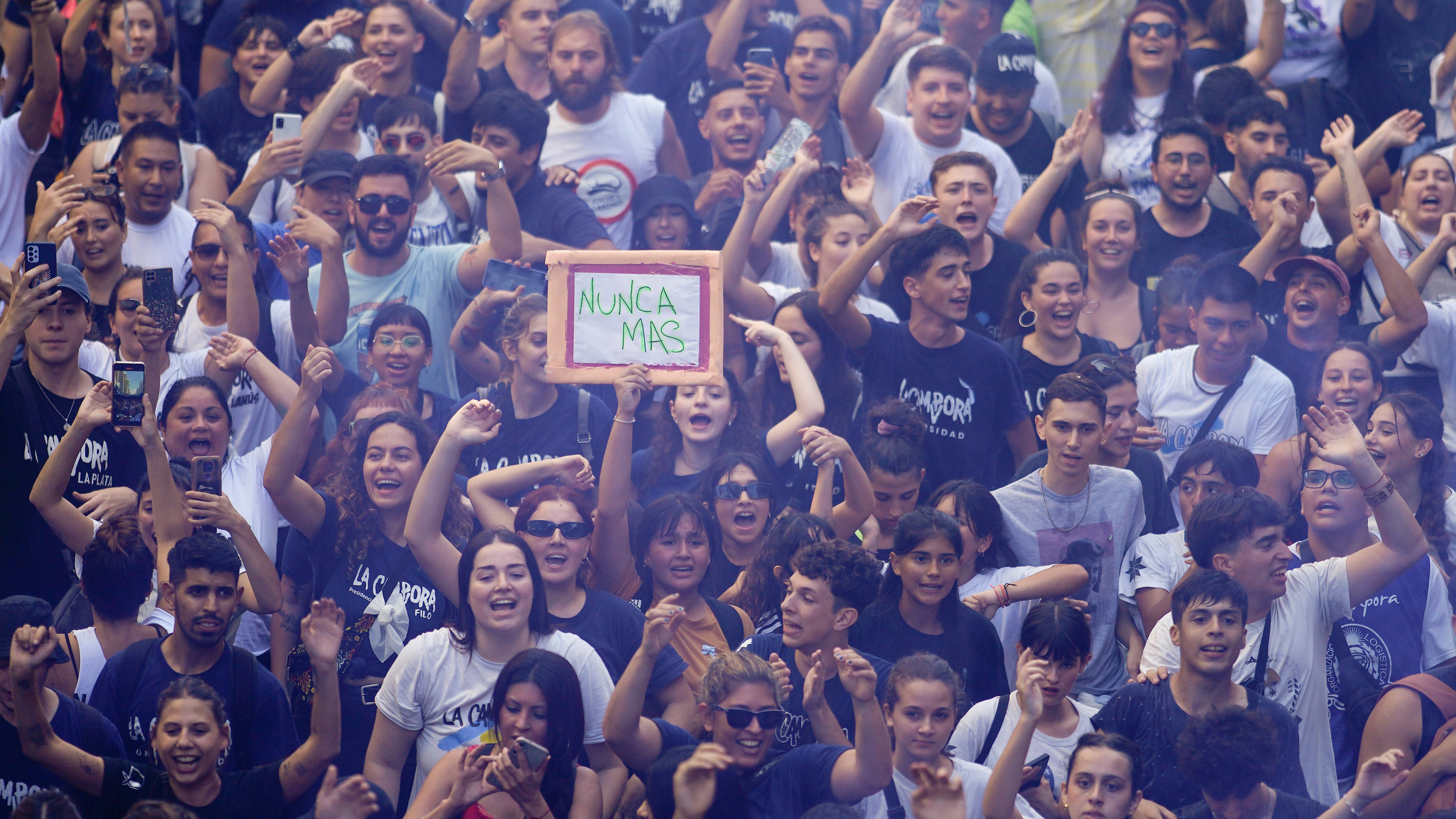 En un dramático despliegue de oposición, argentinos de todas las edades paralizaron el centro de Buenos Aires, donde entonaron canciones, tocaron tambores y ondearon pancartas en las que insistieron: “Fueron 30,000″.