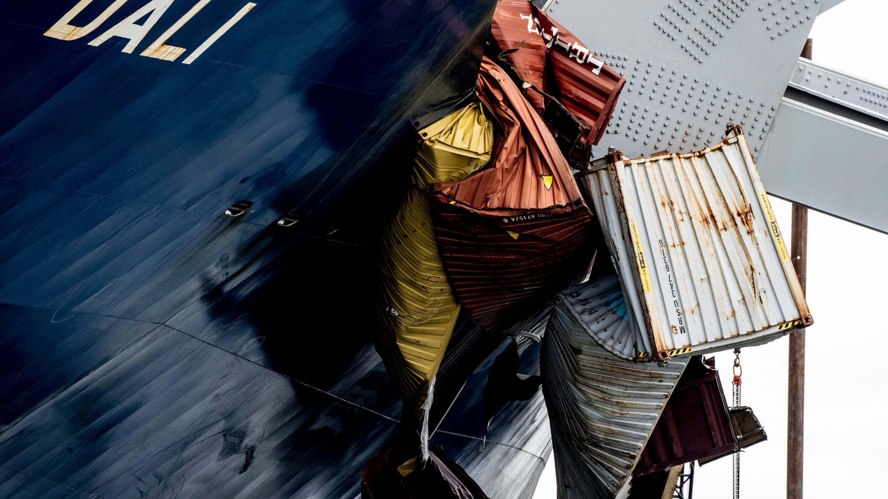 Las tripulaciones están abocadas a la complicada tarea de despejar los trozos de acero y concreto caídos al agua cuando un buque portacontenedores se quedó sin electricidad y chocó contra una de las columnas del puente. El domingo, equipos de buzos inspeccionaron el puente y el buque malogrado, y obreros en brazos mecánicos usaron antorchas para cercenar los trozos de acero que quedaron por encima de la superficie.