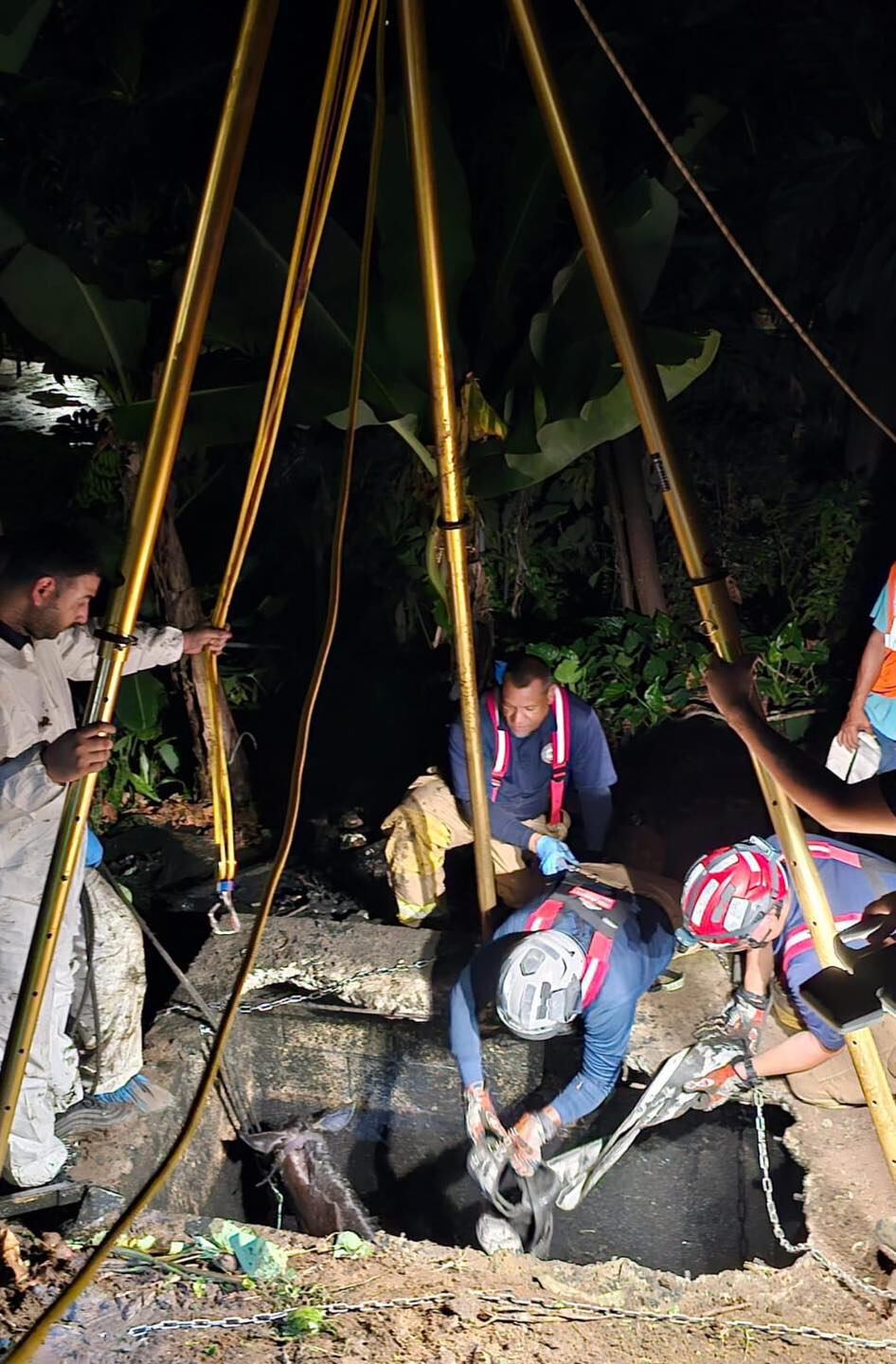 “Aproximadamente a las 12:45 am de hoy [martes], logramos sacar al caballo del pozo séptico. Para lograr este éxito, los oficiales utilizaron equipos especializados, incluyendo herramientas para romper el cemento, un sistema de líneas 5 a 1, un trípode para la altura y un arnés especial diseñado para animales. Además, se vació el pozo a la mitad manualmente, utilizando un cubo. El caballo será atendido por un veterinario.