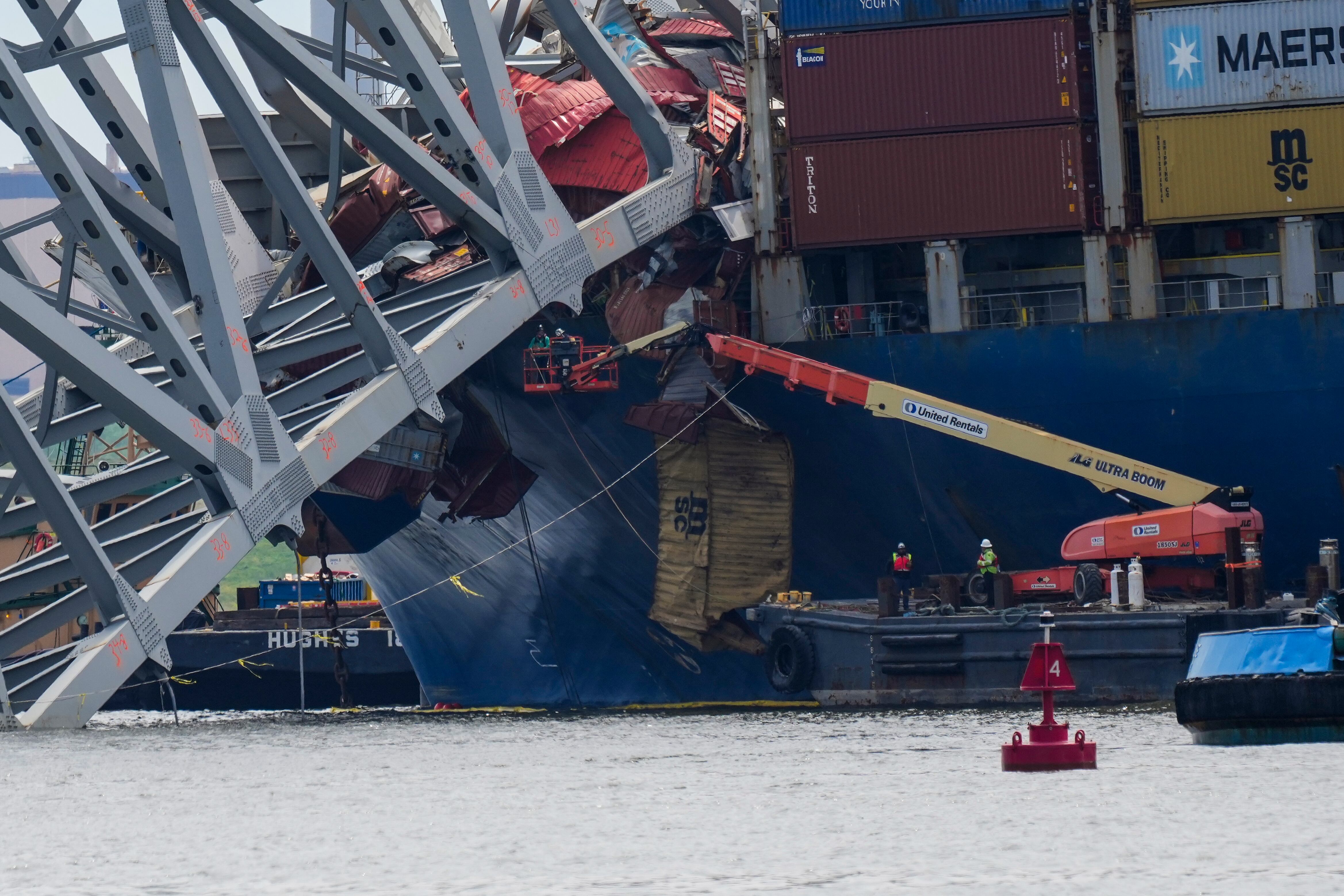 El barco portacontenedores que se estrelló contra un pilar del puente permanece en el lugar desde el hecho, pero las autoridades planean trasladarlo para permitir que se reanude el tránsito por el puerto de Baltimore. Los funcionarios esperan poder sacarlo para el 10 de mayo, según un comunicado emitido por el Puerto de Baltimore.