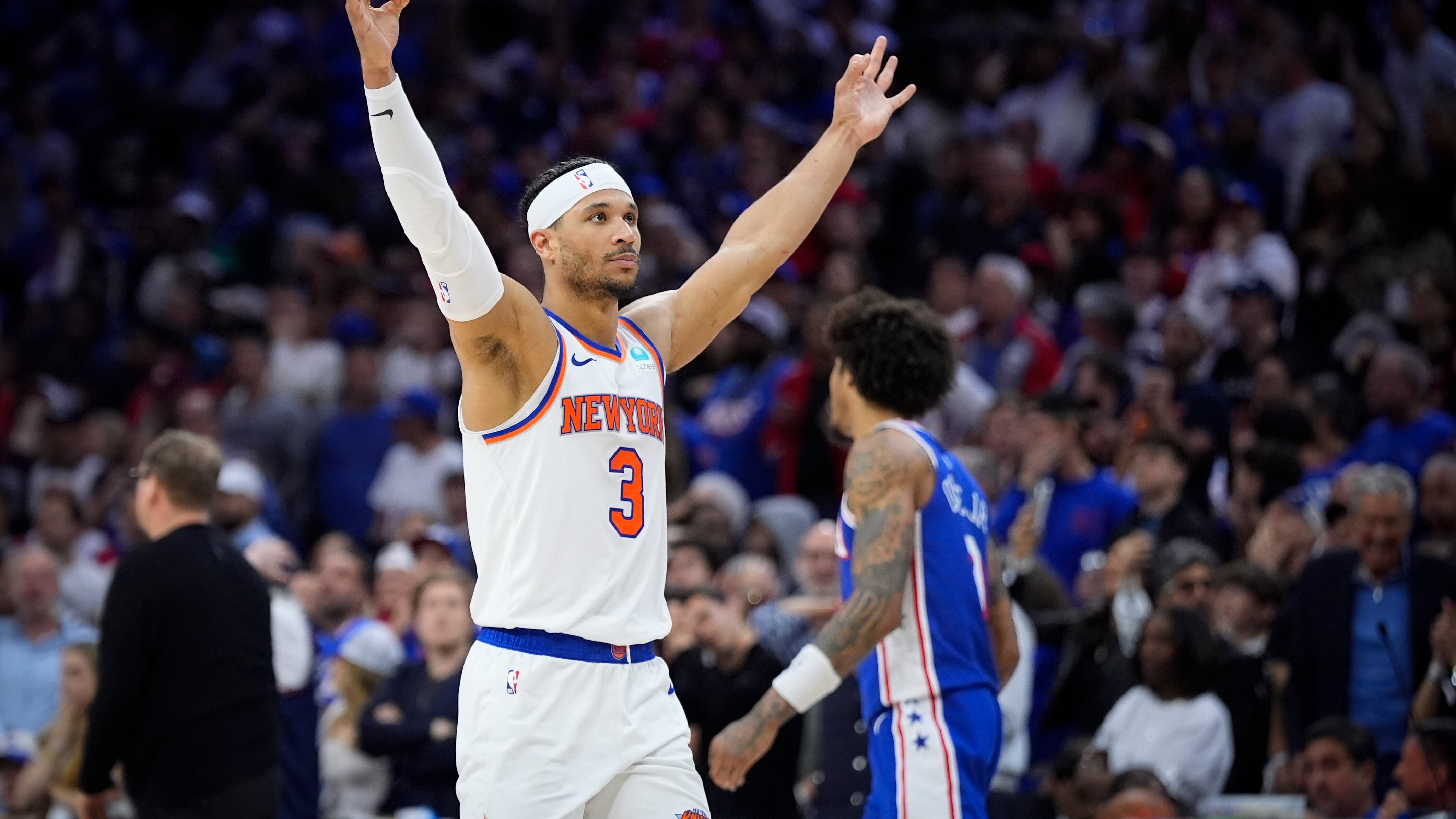 Hart acertó el triple que significó la ventaja a 24.4 segundos del final, y los Knicks de Nueva York superaron el jueves 118-115 a Filadelfia, con lo cual se instalaron en la segunda ronda de los playoffs.
