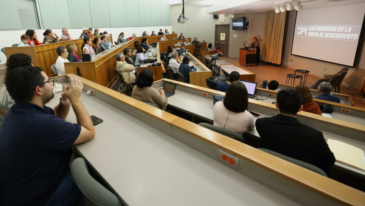 Foro “Los archivos de la Junta al descubierto” para presentar la herramienta “Buscador de la Junta”, archivo único que consolida la mayor cantidad de documentos públicos disponibles sobre la Junta de Control Fiscal establecida en Puerto Rico, en la Facultad de Derecho de la Universidad Interamericana de Puerto Rico. Foto por Brandon Cruz González | Centro de Periodismo Investigativo