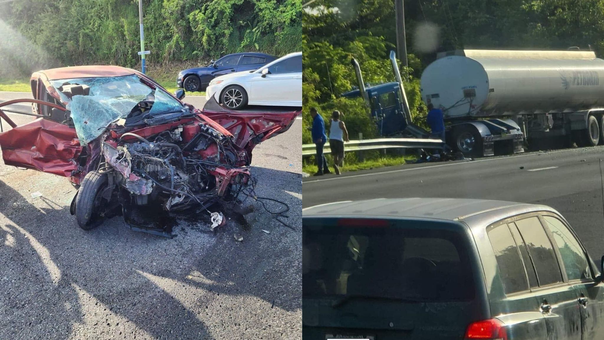 El informe preliminar establece que, mientras el conductor del vehículo Toyota Corolla, de color vino, identificado como Domingo Lugo, de 36 años y vecino de Camuy, y como pasajeros Stephanie Rodríguez Luciano, de 26 años y su hijo de 8 años, transitaba en dirección de Camuy hacia Arecibo, al rebasar un camión de carga, por el lado derecho, fue impactado el vehículo por la parte posterior del lado izquierdo. Luego, traspaso la isleta que divide los carriles, invadiendo el carril contrario y siendo chocado por la parte frontal lado derecho por otro camión, que cargaba combustible.