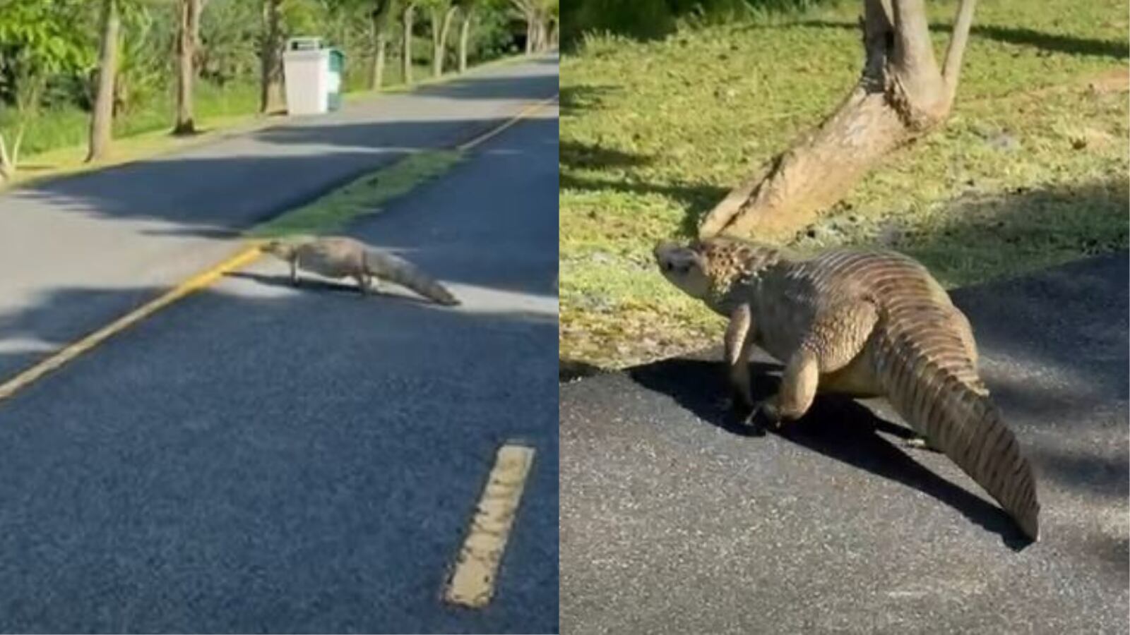 En un video, publicado en redes sociales, se observa al reptil cruzando un camino del parque, por la zona donde los residentes y visitantes pasean.