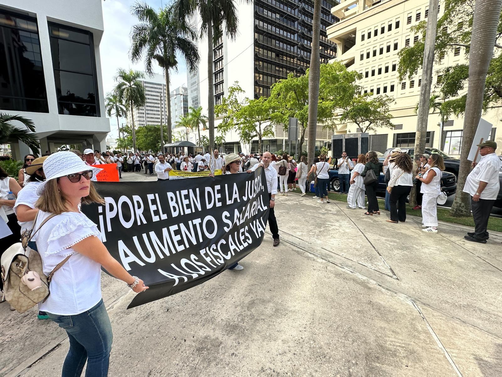 Una marcha fue realizada frente al edificio World Plaza en la Milla de Oro en horas de la tarde del martes, donde fiscales, procuradores de menores, procuradores de familia y registradores de la propiedad del Ministerio Público de Puerto Rico exigieron a la Junta de Supervisión Fiscal que libere los fondos necesarios para implementar los aumentos salariales establecidos por la ley 134 del 2023.
