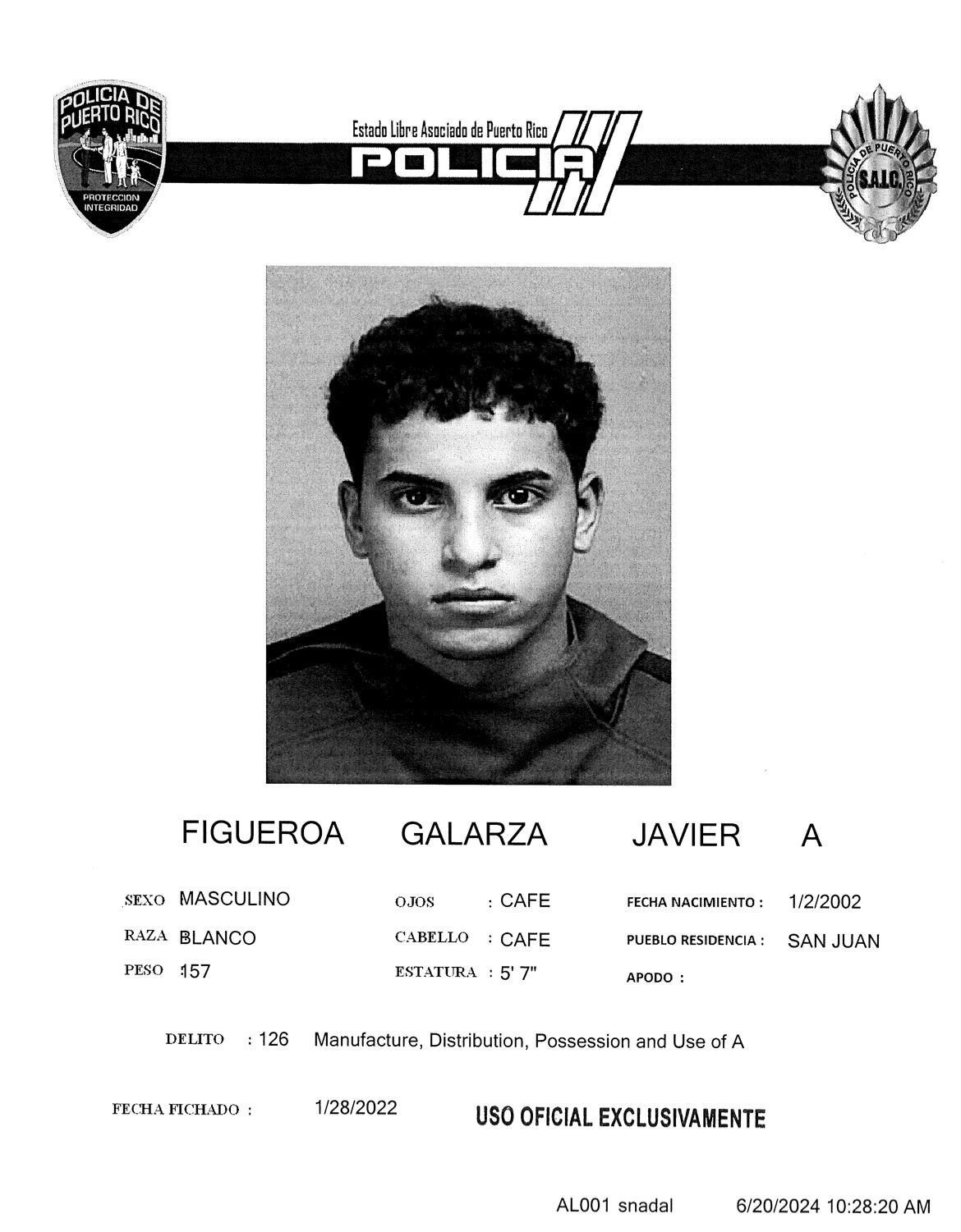 Figueroa Galarza poseía expediente criminal por Infracciones a la Ley de Armas.