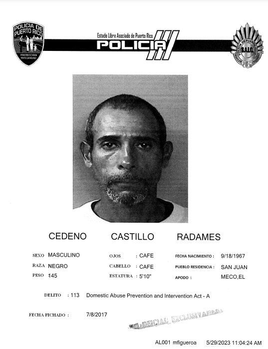 El comisionado del Negociado de la Policía de Puerto Rico, coronel Antonio López Figueroa, informó la extradición en el día de hoy, jueves, de Radamés Cedeño Castillo, alias “Meco”, de 56 años.