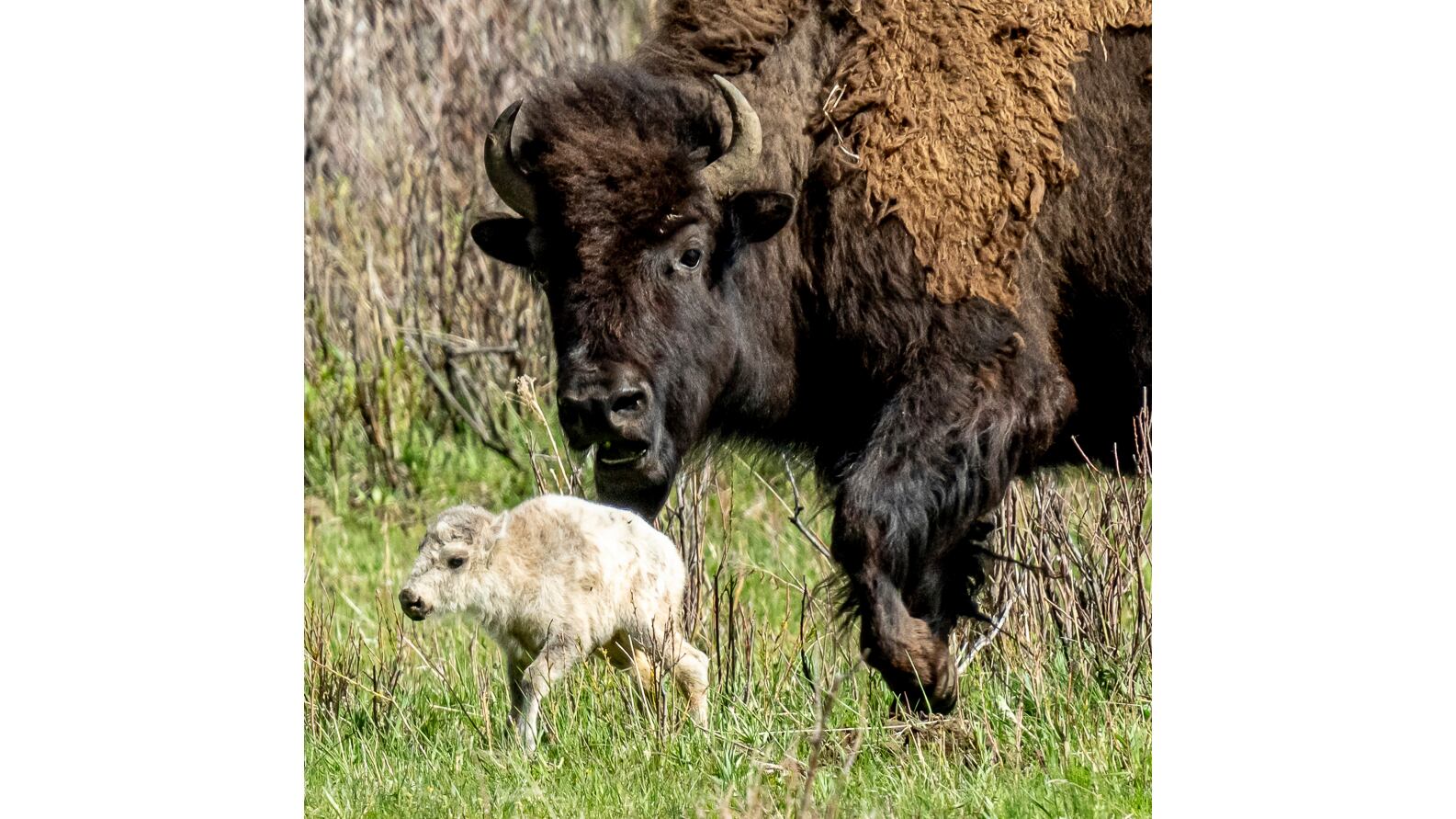 Las crías blancas son inusuales pero no desconocidas en los ranchos de búfalos, resultado de la cruza entre búfalos y vacas. En la naturaleza, los bisontes blancos son muy raros, y no se conoce ninguno en Yellowstone —la mayor reserva salvaje de estos animales del continente— en los últimos tiempos, si es que ha habido alguno.